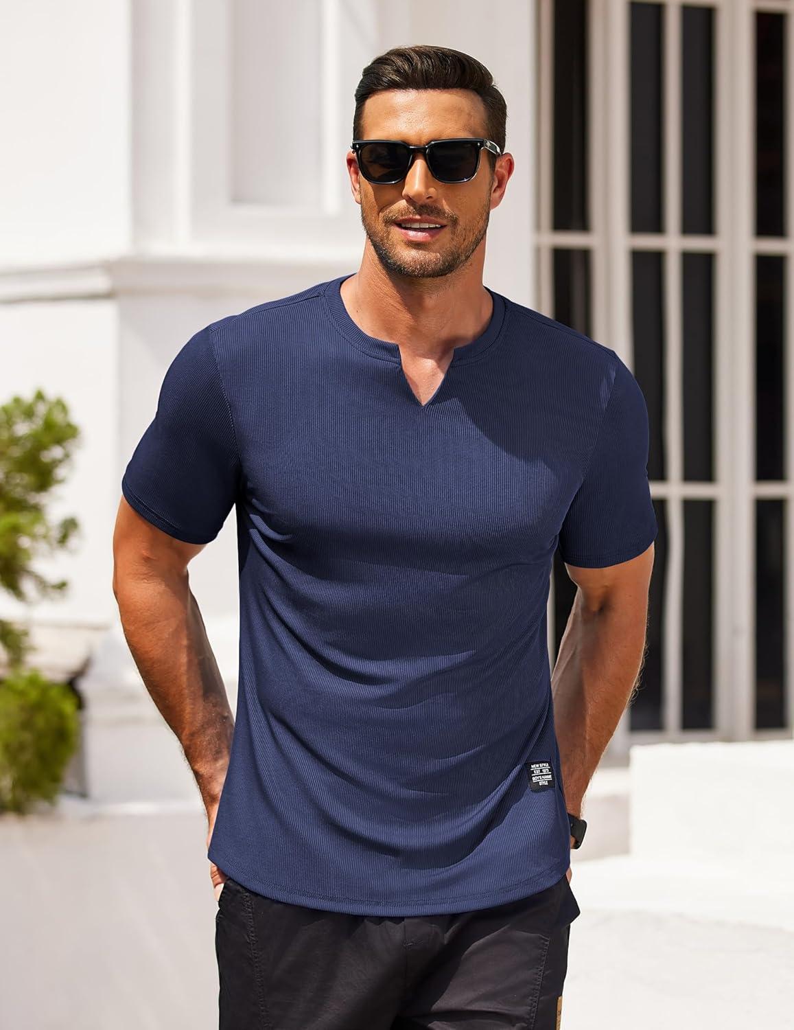 COOFANDY Mens Muscle T-Shirts V-Neck Slim Fit Workout Shirt Short Sleeve Longline Gym Athletic Tee Shirts(Navy Blue)