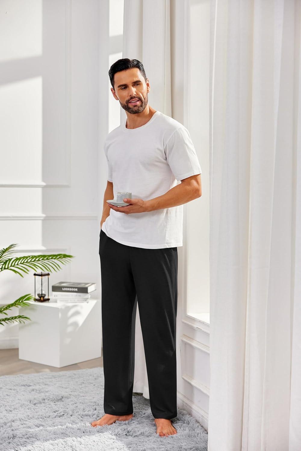 COOFANDY Men’s Open Bottom Sweatpants Casual Yoga Pants Lightweight Jogger Lounge Pants with Pockets(2 Pack: Black/Light Heather Grey)
