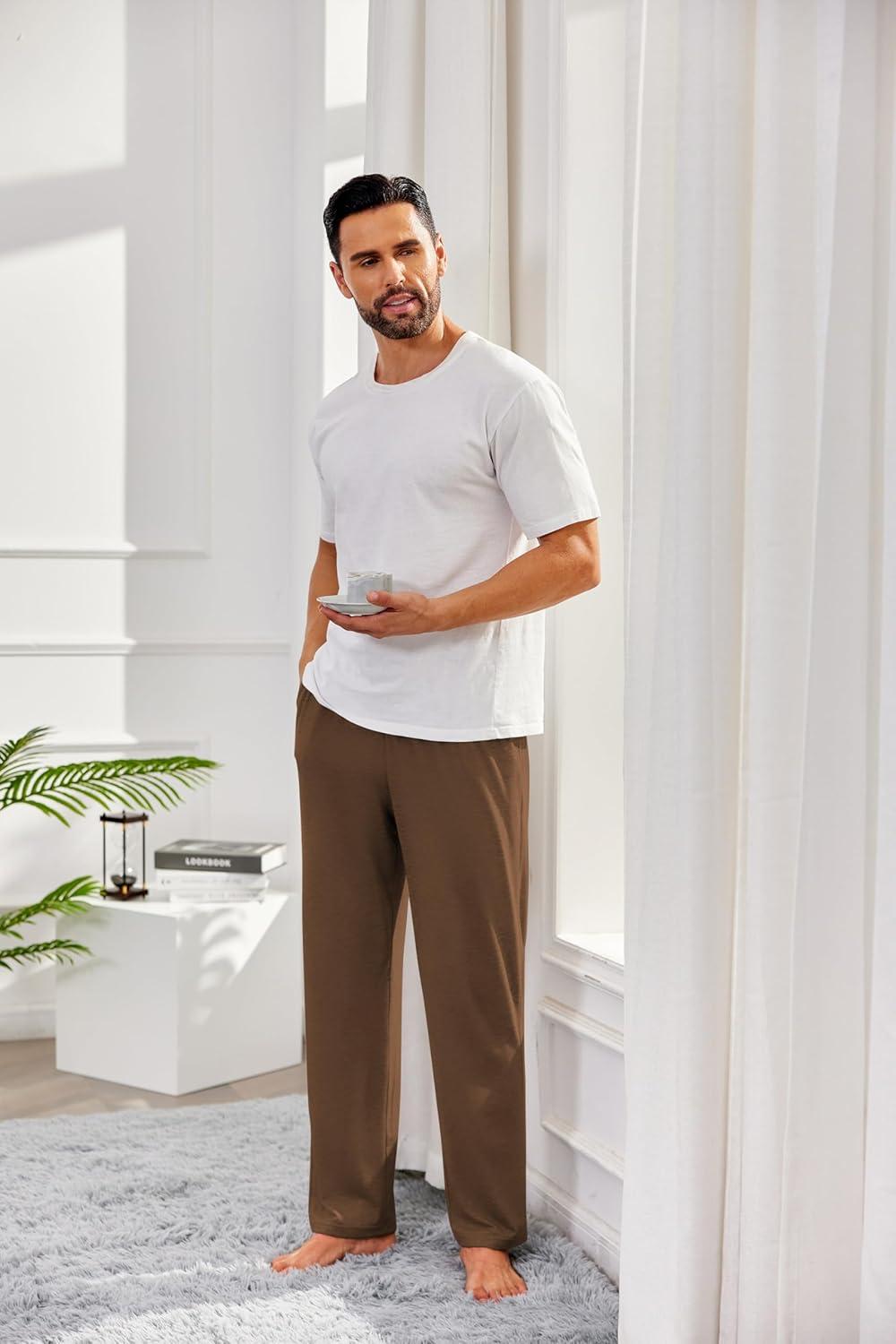 COOFANDY Men’s Open Bottom Sweatpants Casual Yoga Pants Lightweight Jogger Lounge Pants with Pockets(Brown)