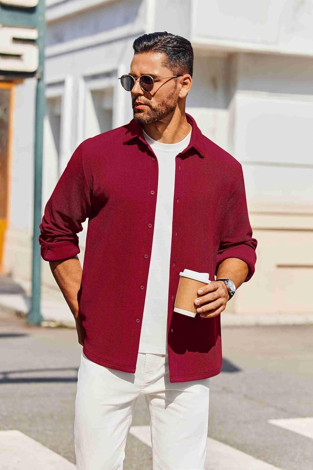 COOFANDY Classic Long Sleeve Button-Down Shirt Jacket with Textured Stretchy Fabric