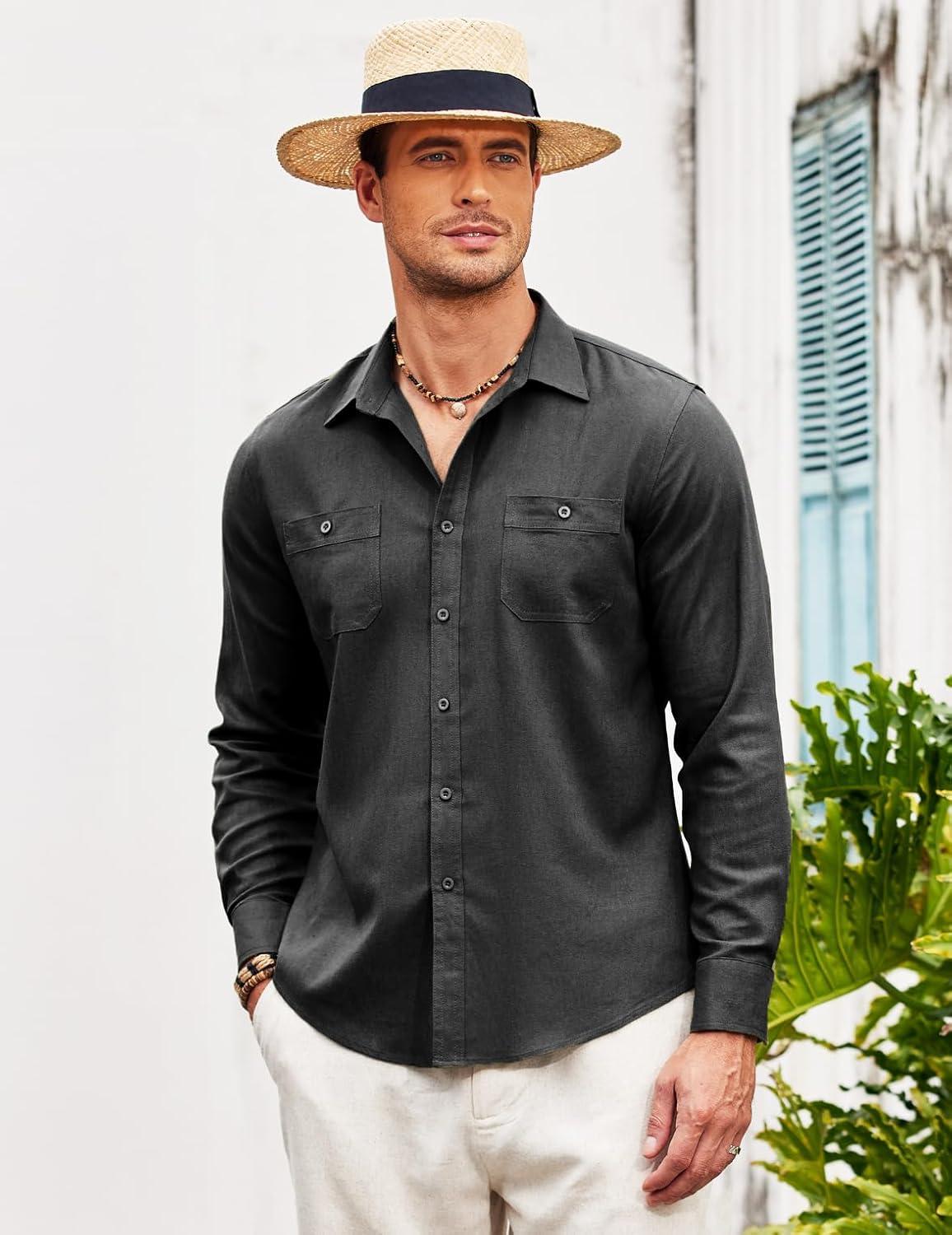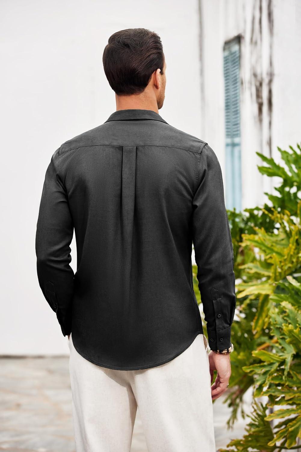COOFANDY Men Linen Cuban Guayabera Shirts – Long Sleeve Dress & Beach Wedding Shirts