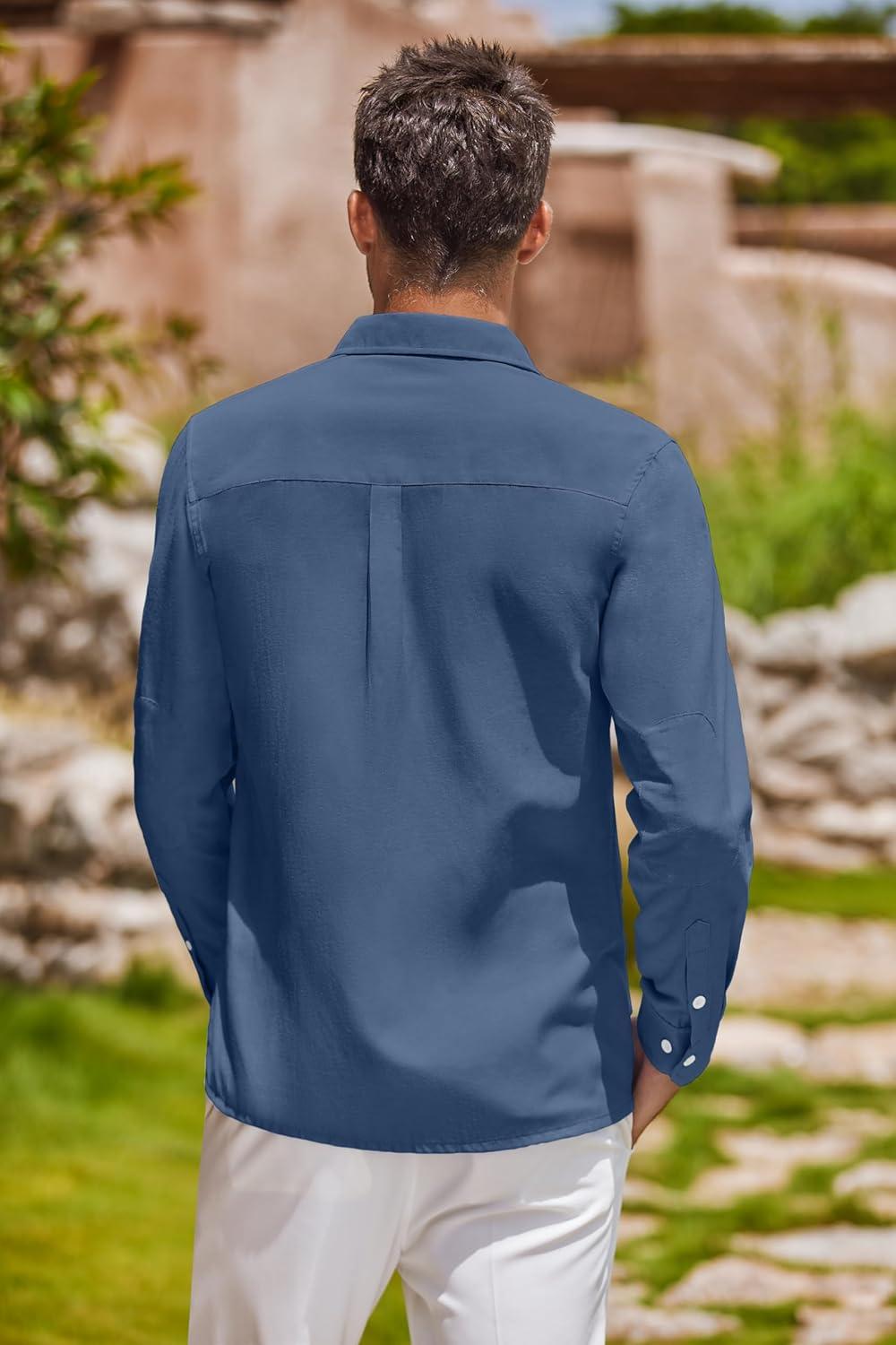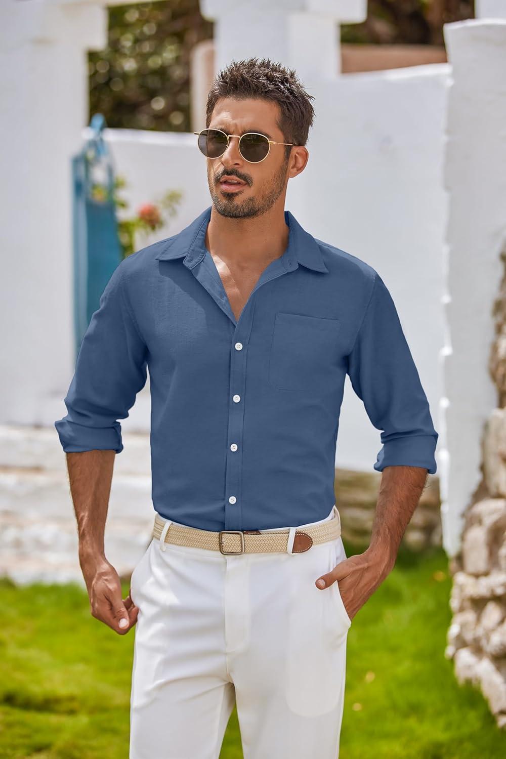 COOFANDY Men's Oxford Shirt Long Sleeve Casual Button Down Shirts Regular Fit Dress Shirts(Denim Blue)