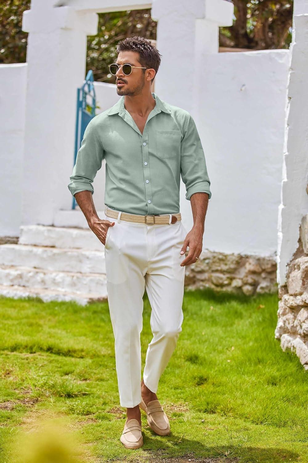 COOFANDY Men’s Oxford Shirt Long Sleeve Casual Button Down Shirts Regular Fit Dress Shirts(Light Green)