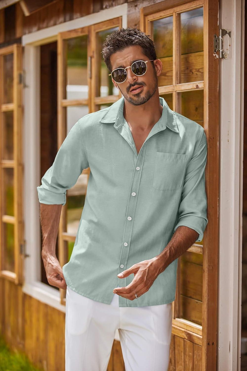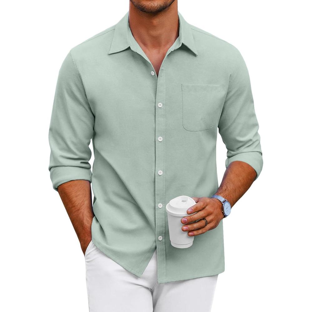 imageCOOFANDY Mens Oxford Shirt Long Sleeve Casual Button Down Shirts Regular Fit Dress ShirtsLight Green