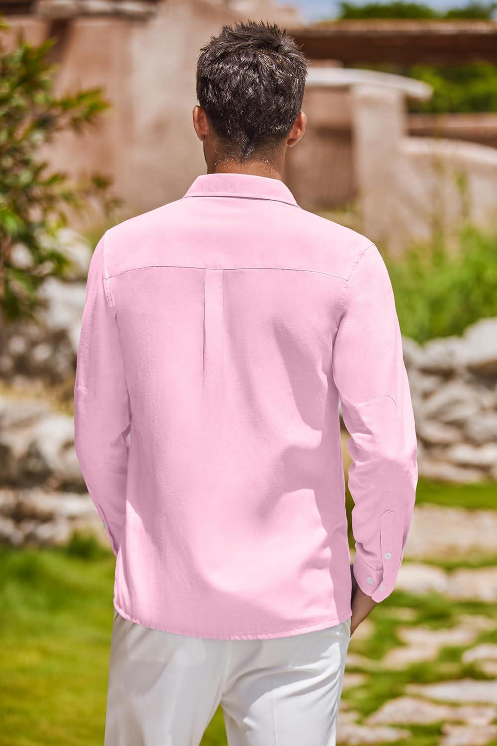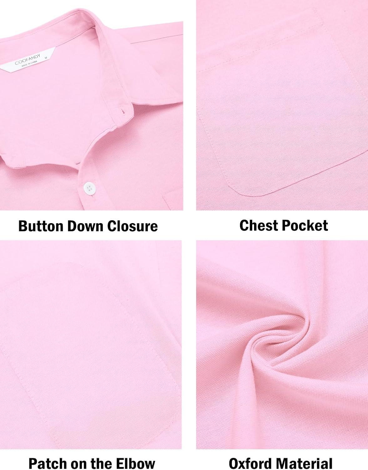 COOFANDY Men's Oxford Shirt Long Sleeve Casual Button Down Shirts Regular Fit Dress Shirts(Light Pink)