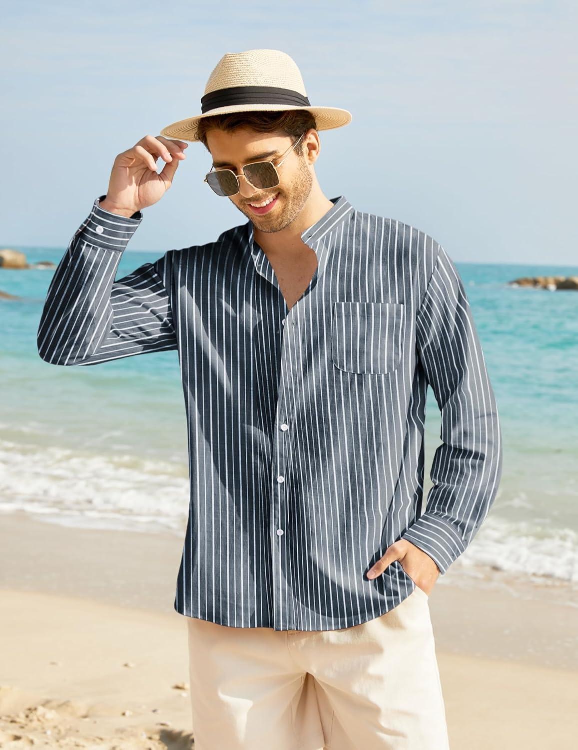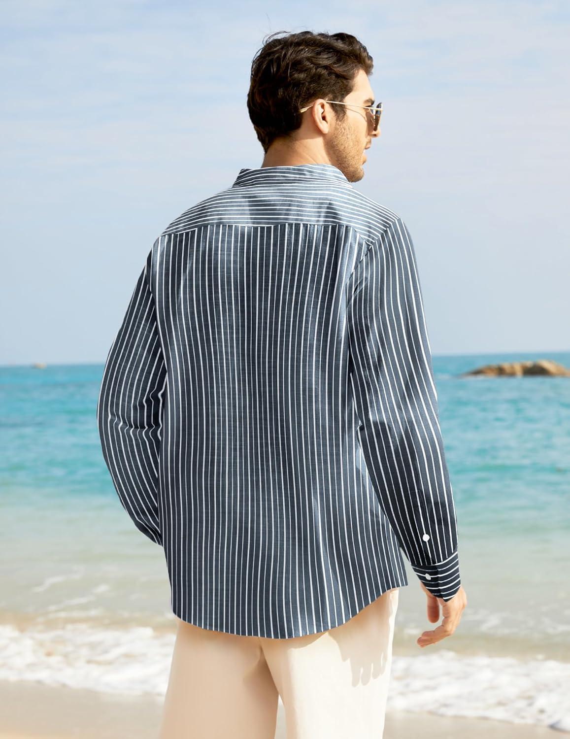 Be the first to review “COOFANDY Men’s Oxford Shirts Long Sleeve Casual Button Down Shirts Band Collar Dress Shirt with Pocket(Thin White Stripes)”