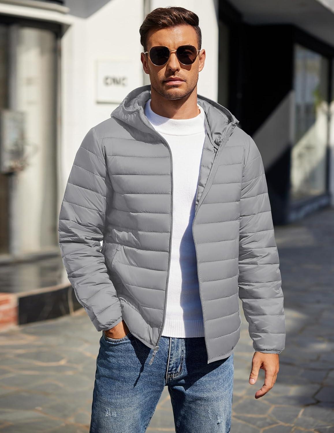 Get up to 50% off on COOFANDY Mens Packable Puffer Jacket Lightweight Hooded Insulated Winter Coat Windproof Zipper Down Jacket(Light Gray) styles during our spring sale event.