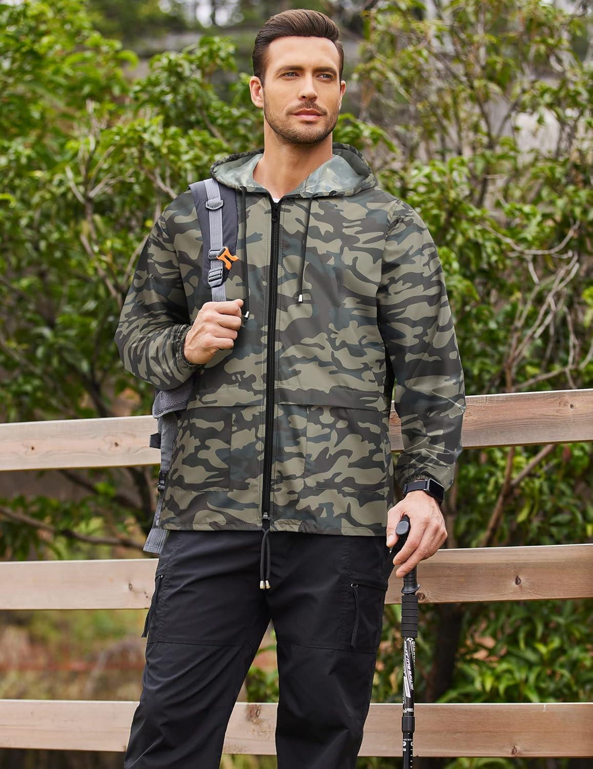 COOFANDY Mens Packable Rain Jacket Lightweight Waterproof Raincoat with Hood Outdoor Rain Gear Travel Hiking Cycling(Camo)