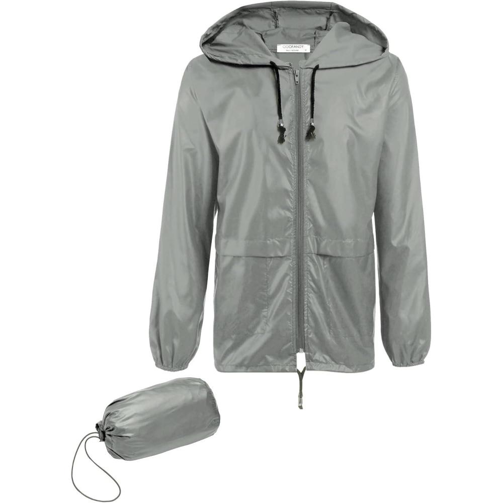 COOFANDY Mens Packable Rain Jacket Lightweight Waterproof Raincoat with Hood Outdoor Rain Gear Travel Hiking Cycling(Grey)