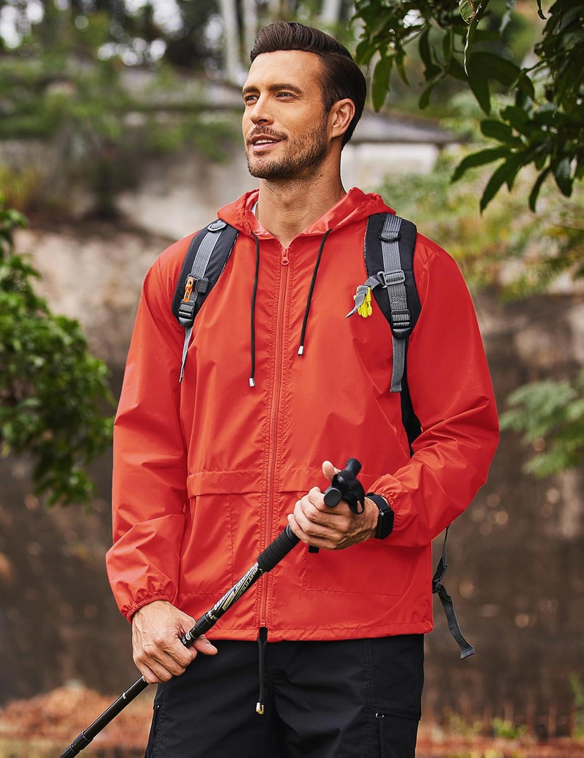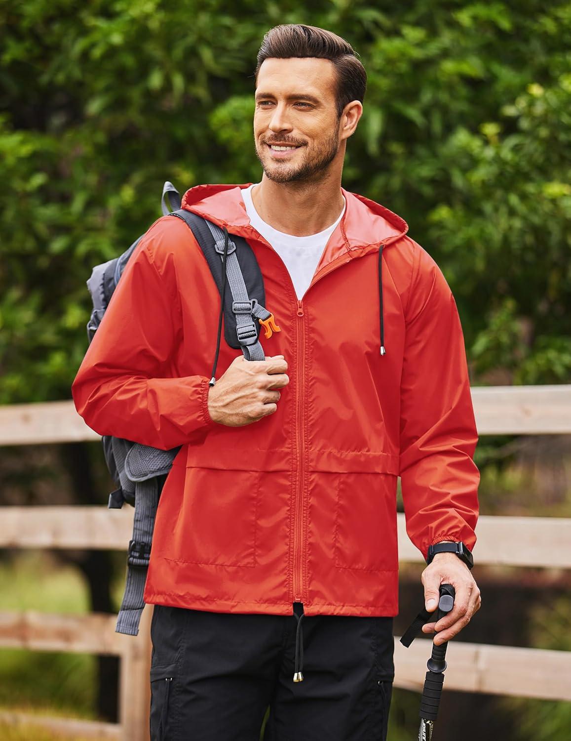 COOFANDY Mens Packable Rain Jacket Lightweight Waterproof Raincoat with Hood Outdoor Rain Gear Travel Hiking Cycling(Red)
