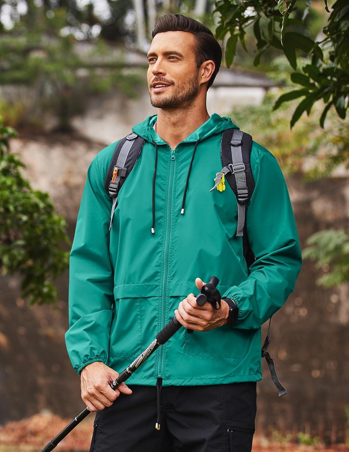COOFANDY Mens Packable Rain Jacket Lightweight Waterproof Raincoat with Hood Outdoor Rain Gear Travel Hiking Cycling(Teal)