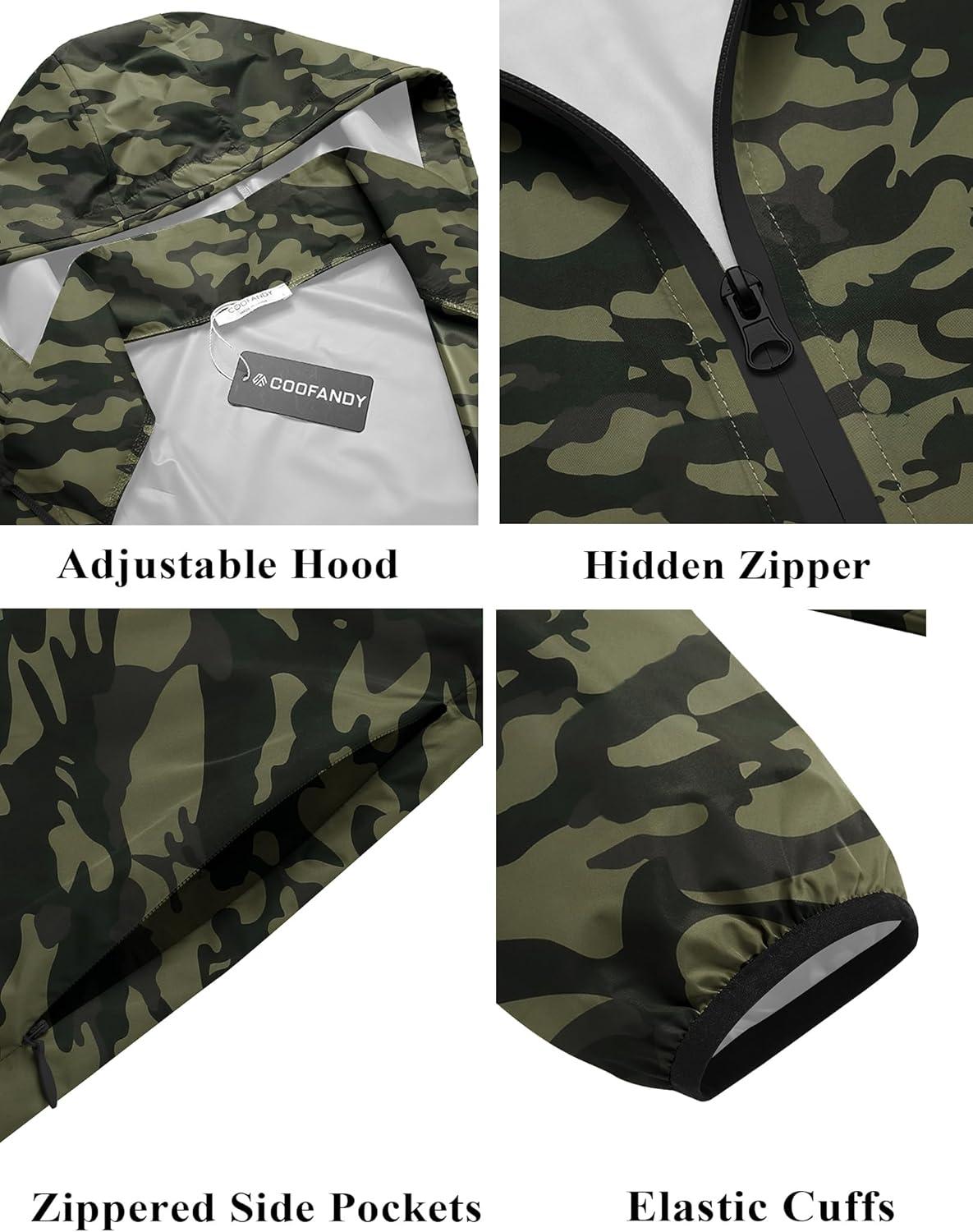 COOFANDY Men's Packable Rain Jacket Lightweight Waterproof Raincoat with Hood Travel Hiking Golf Windbreaker(Forest Camouflage)