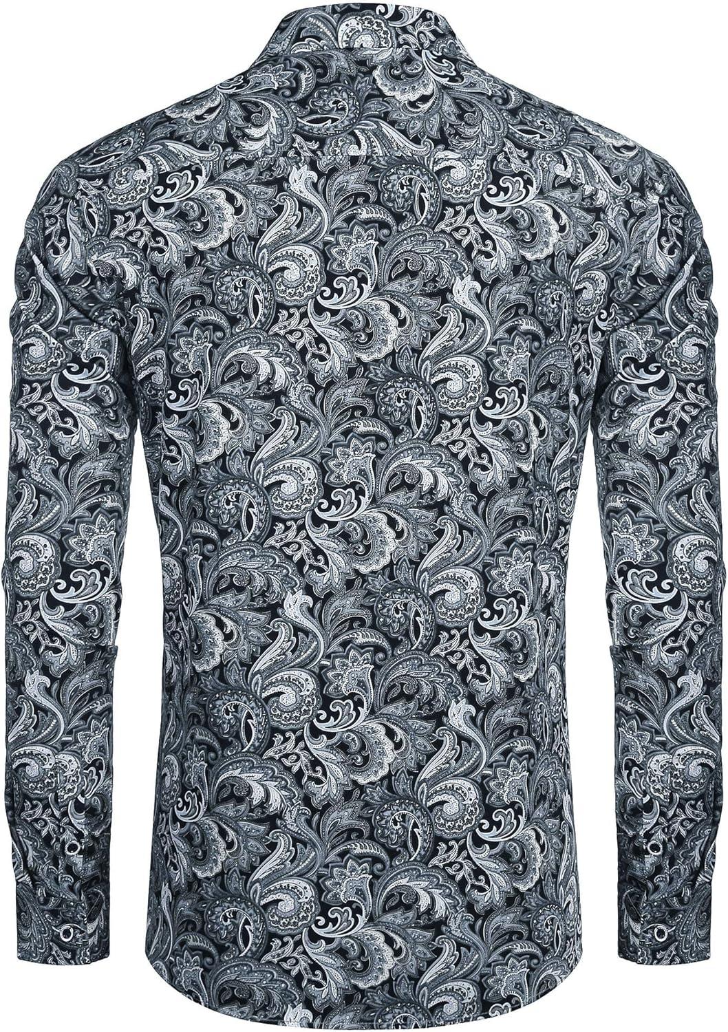 COOFANDY Men’s Paisley Cotton Long Sleeve Shirt Floral Print Casual Retro Button Down Shirt(Pattern 2)