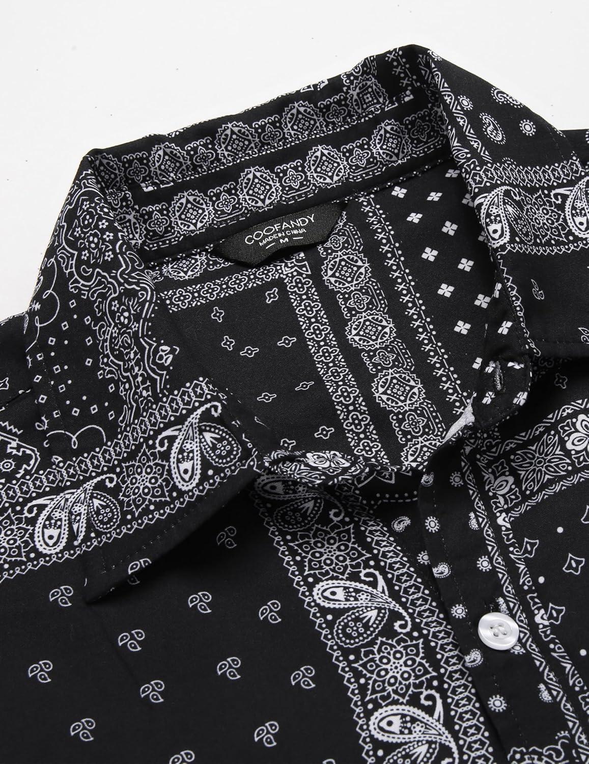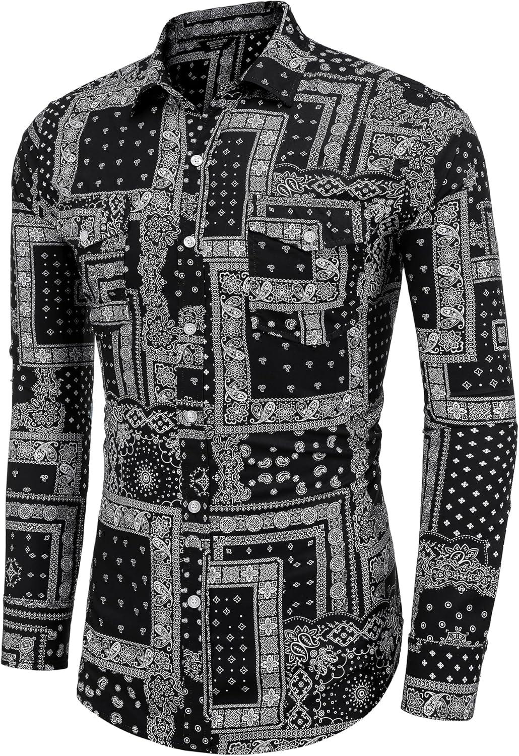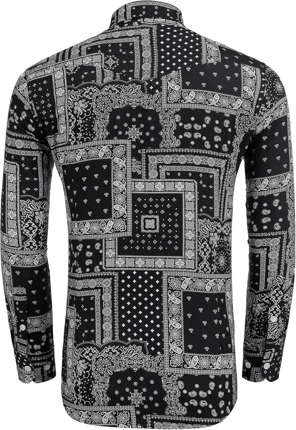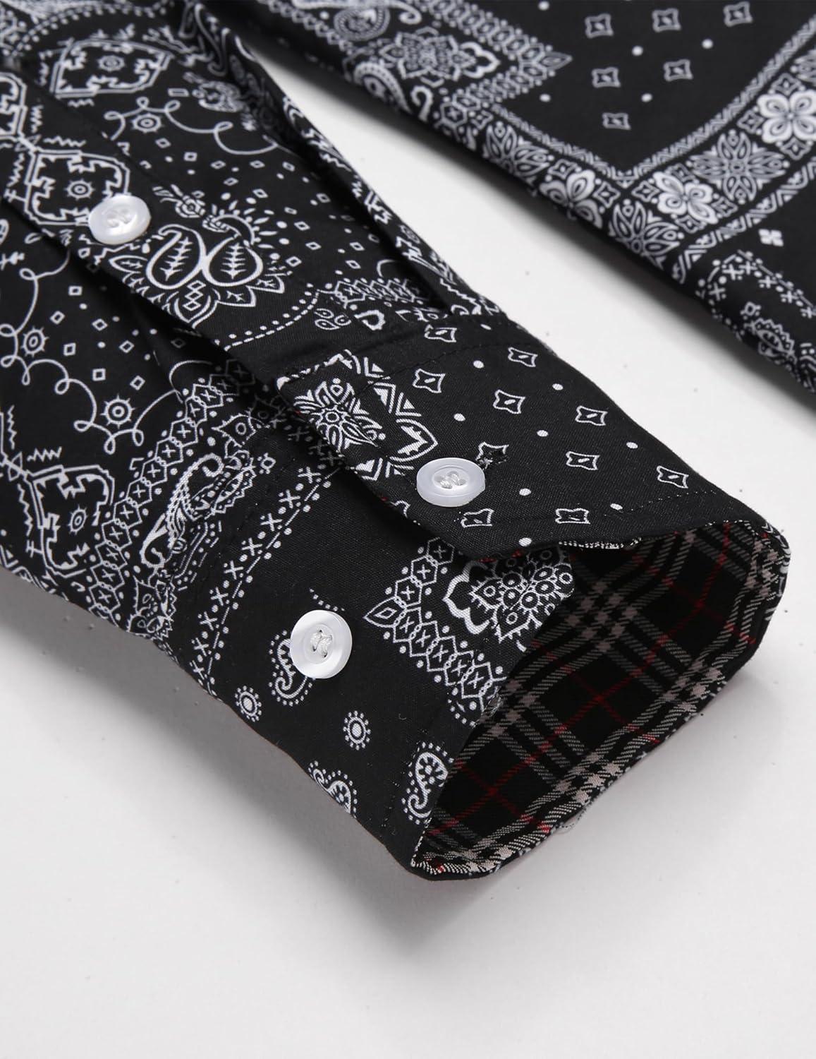 COOFANDY Mens Paisley Printed Shirts Casual Long Sleeve Button Down Shirts Floral Dress Shirt with Pockets(Black-print01)