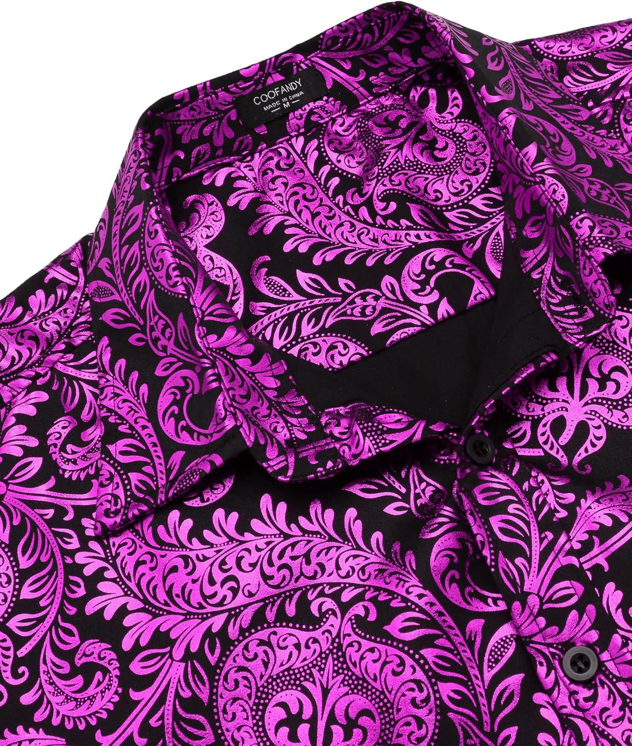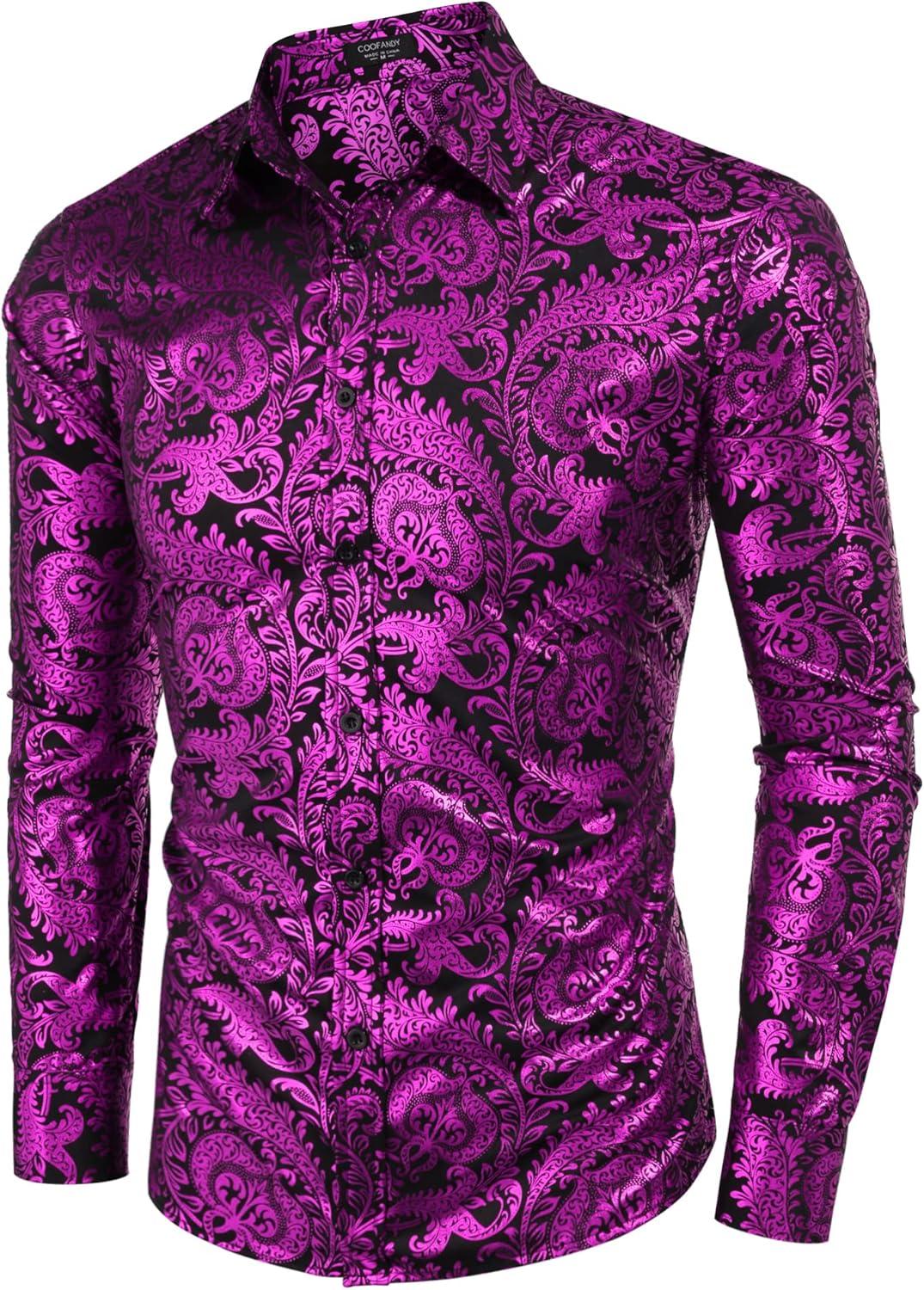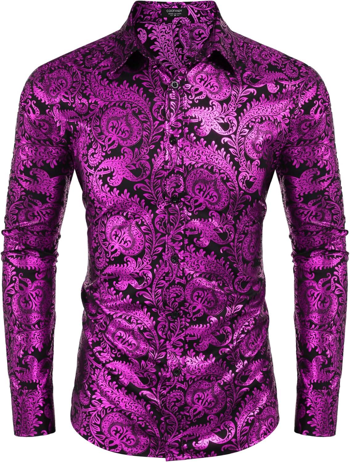 COOFANDY Men’s Paisley Shirt Luxury Disco Long Sleeve Button Down Dress Shirt