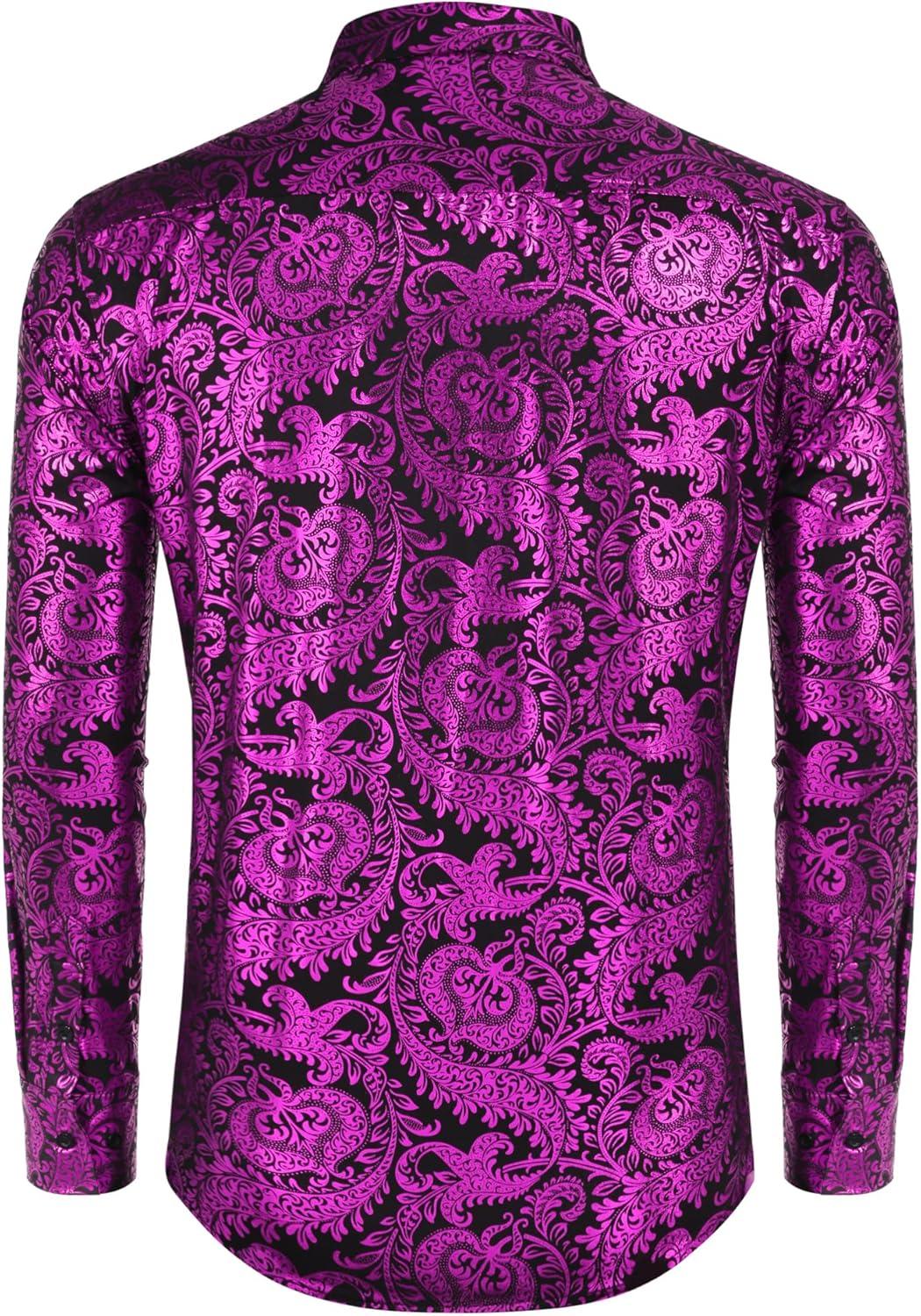 COOFANDY Men's Paisley Shirt Luxury Disco Long Sleeve Button Down Dress Shirts(Pat9)