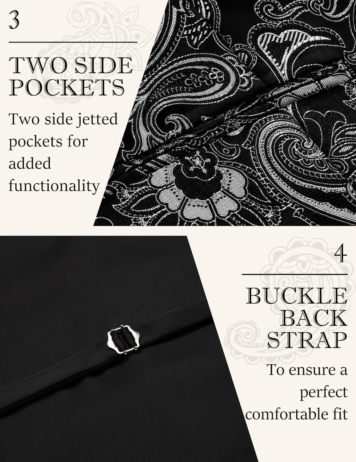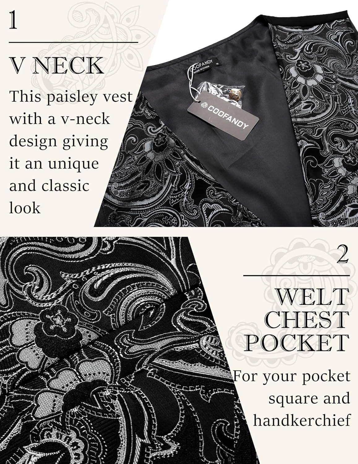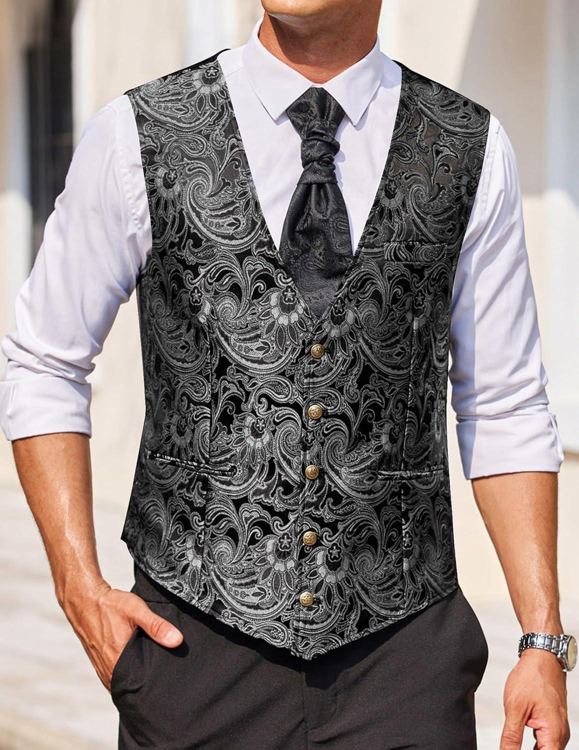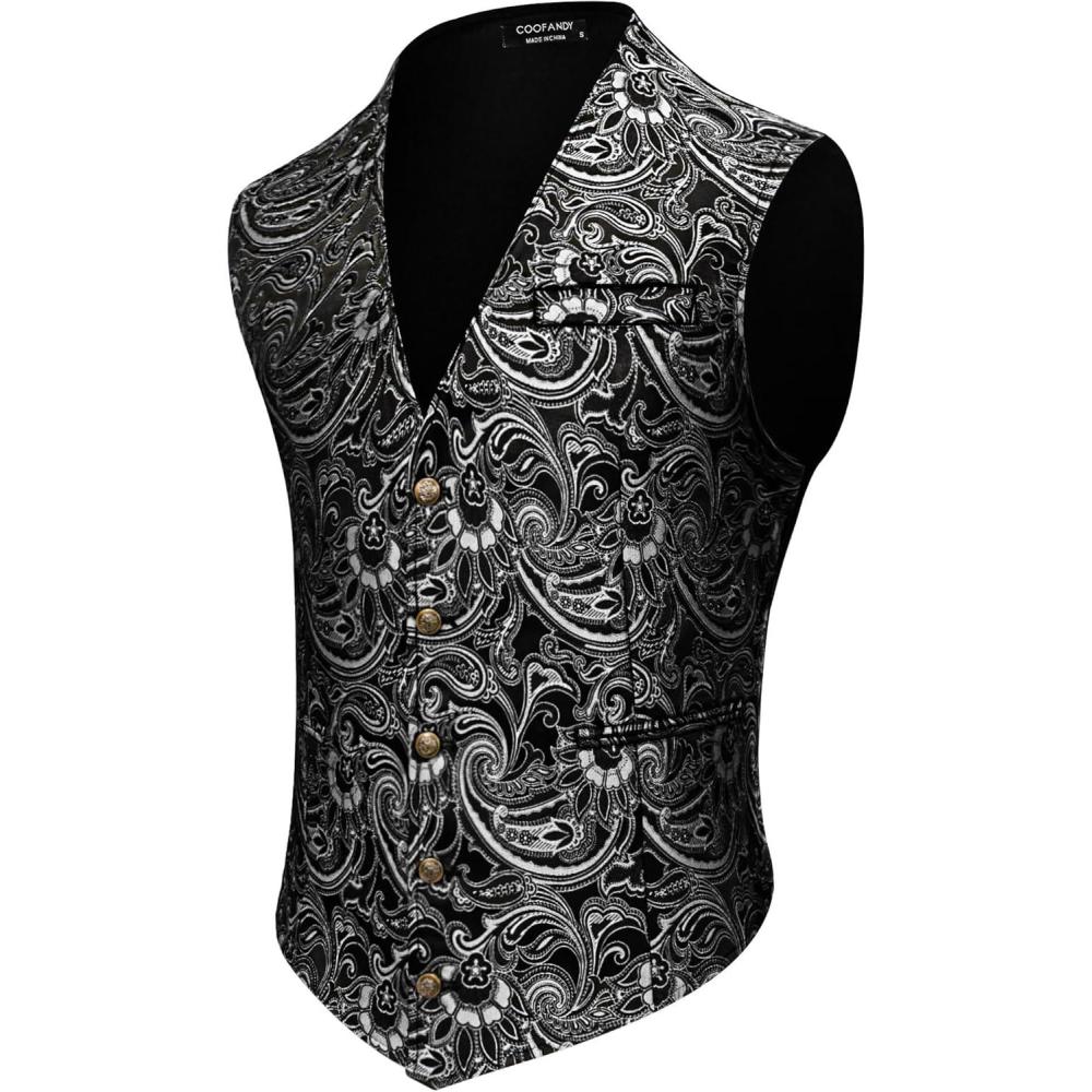 COOFANDY Mens Paisley Tuxedo Vest Victorian Steampunk Gothic Suit Vest Slim Fit V-Neck Waistcoat(Light Silver)