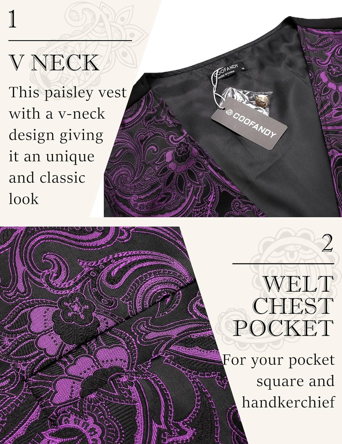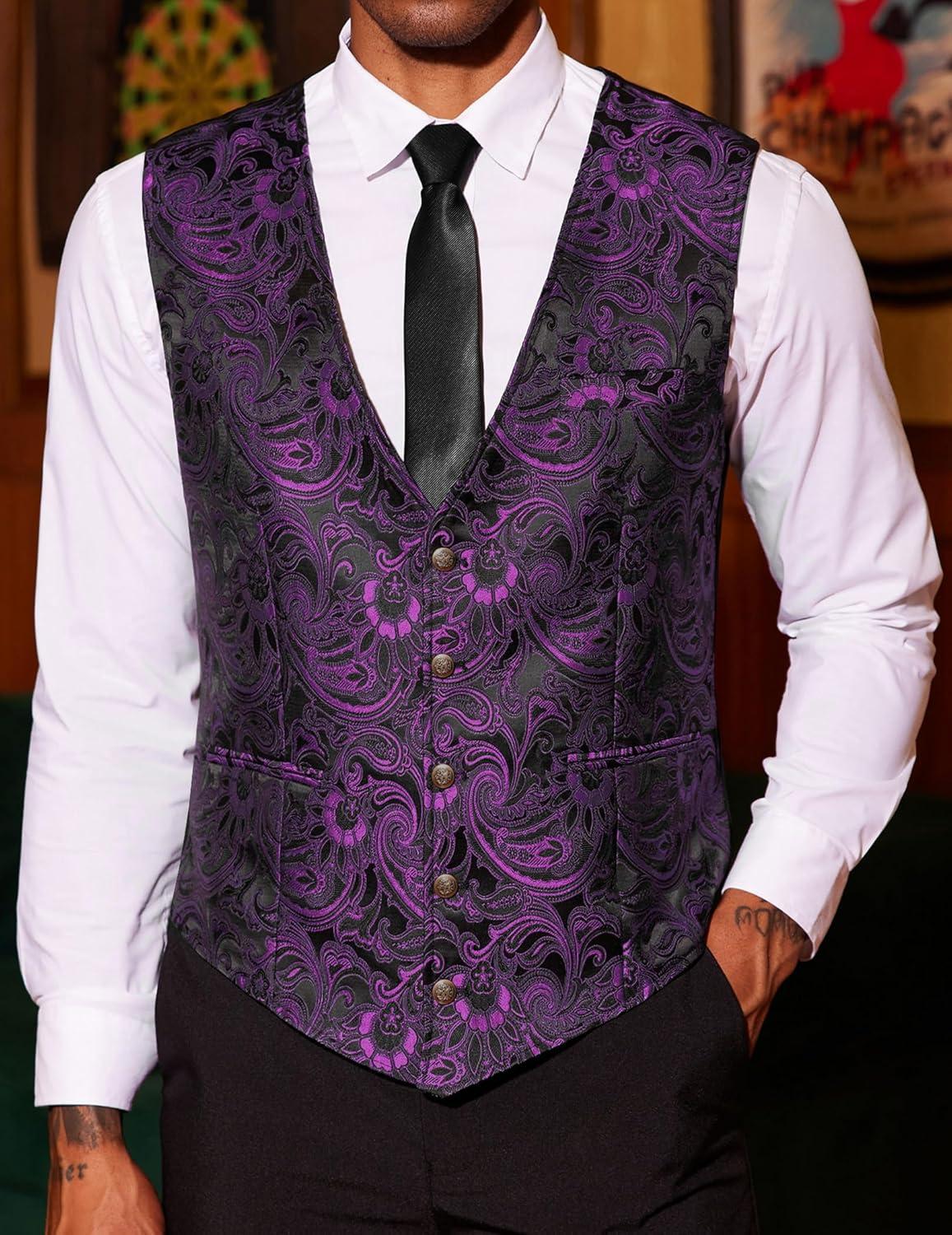 imageCOOFANDY Mens Paisley Tuxedo Vest Victorian Steampunk Gothic Suit Vest Slim Fit VNeck WaistcoatPurple