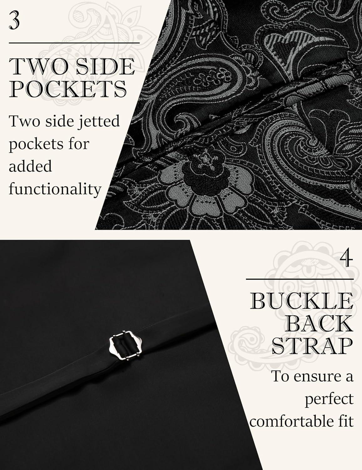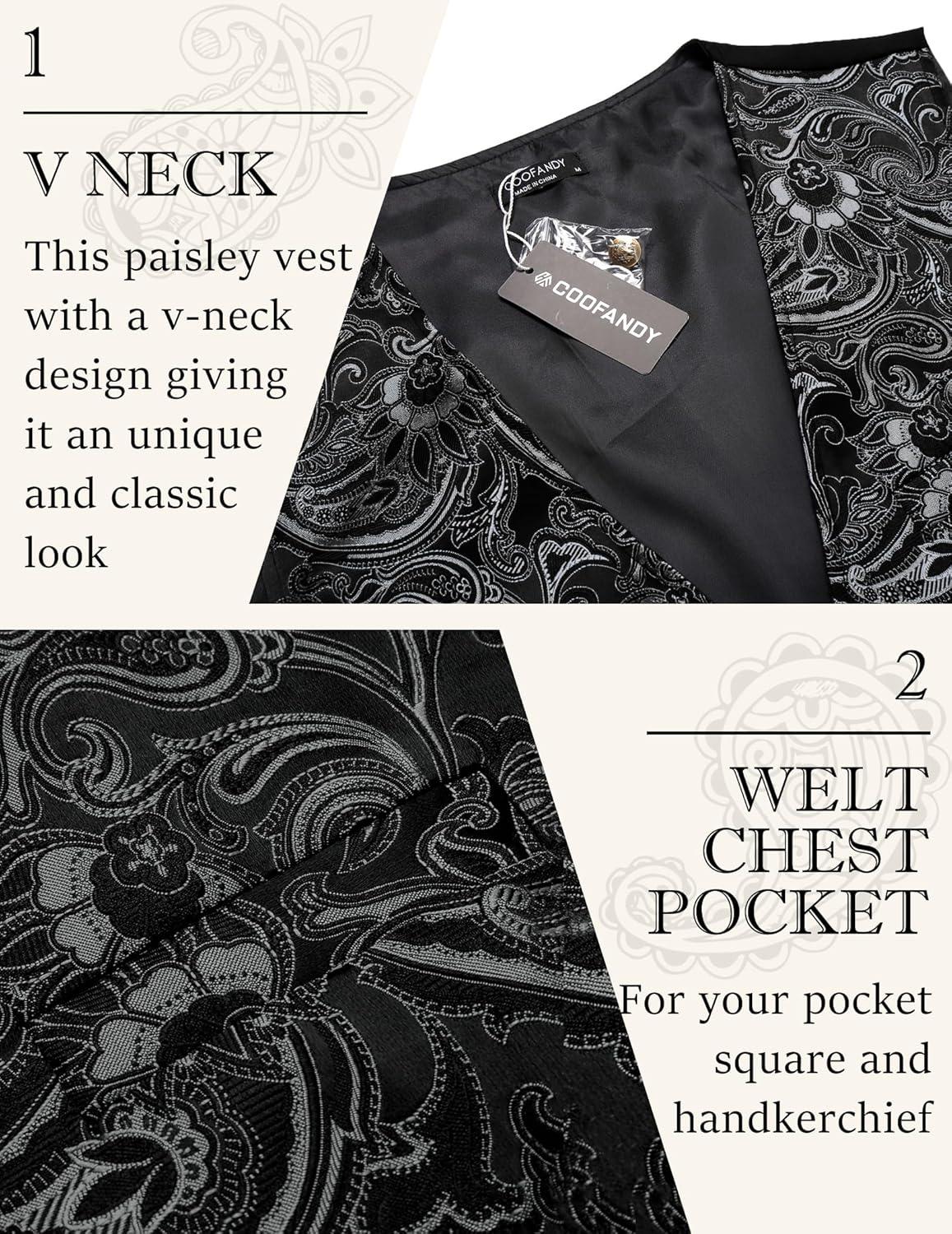 imageCOOFANDY Mens Paisley Tuxedo Vest Victorian Steampunk Gothic Suit Vest Slim Fit VNeck WaistcoatBlack Filigree