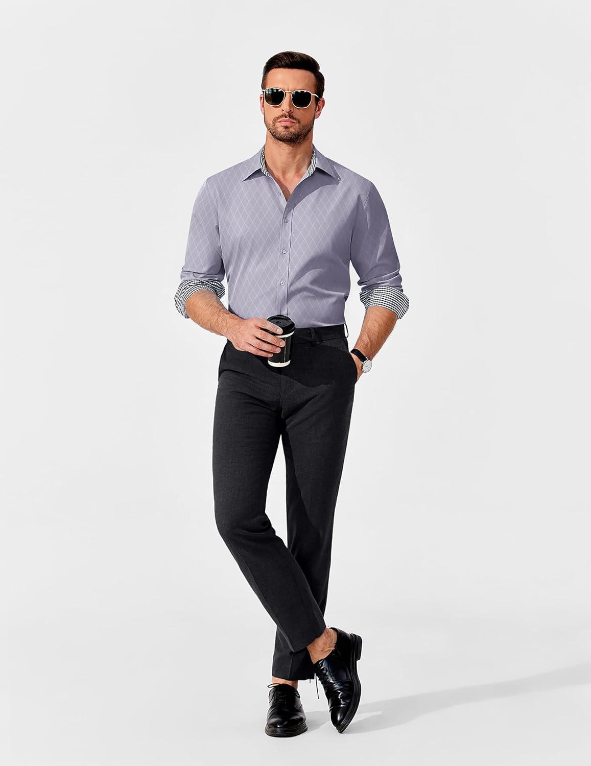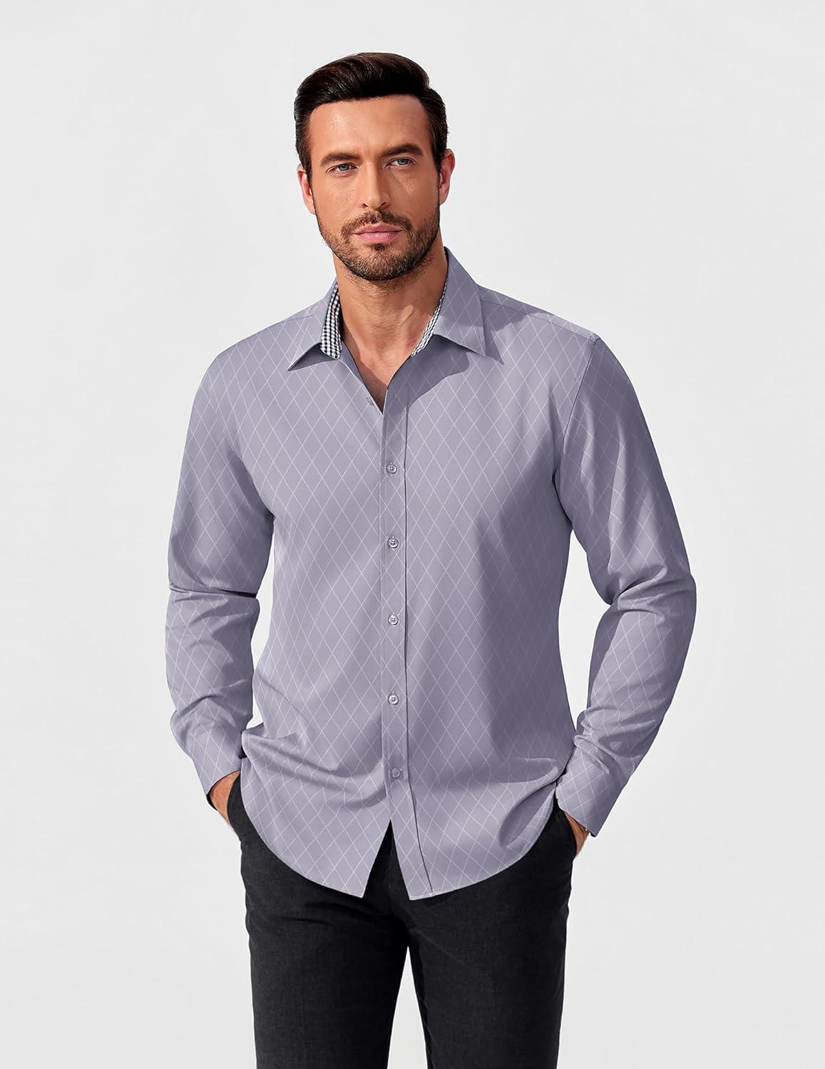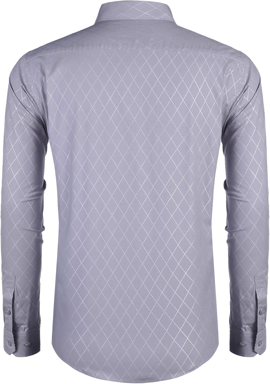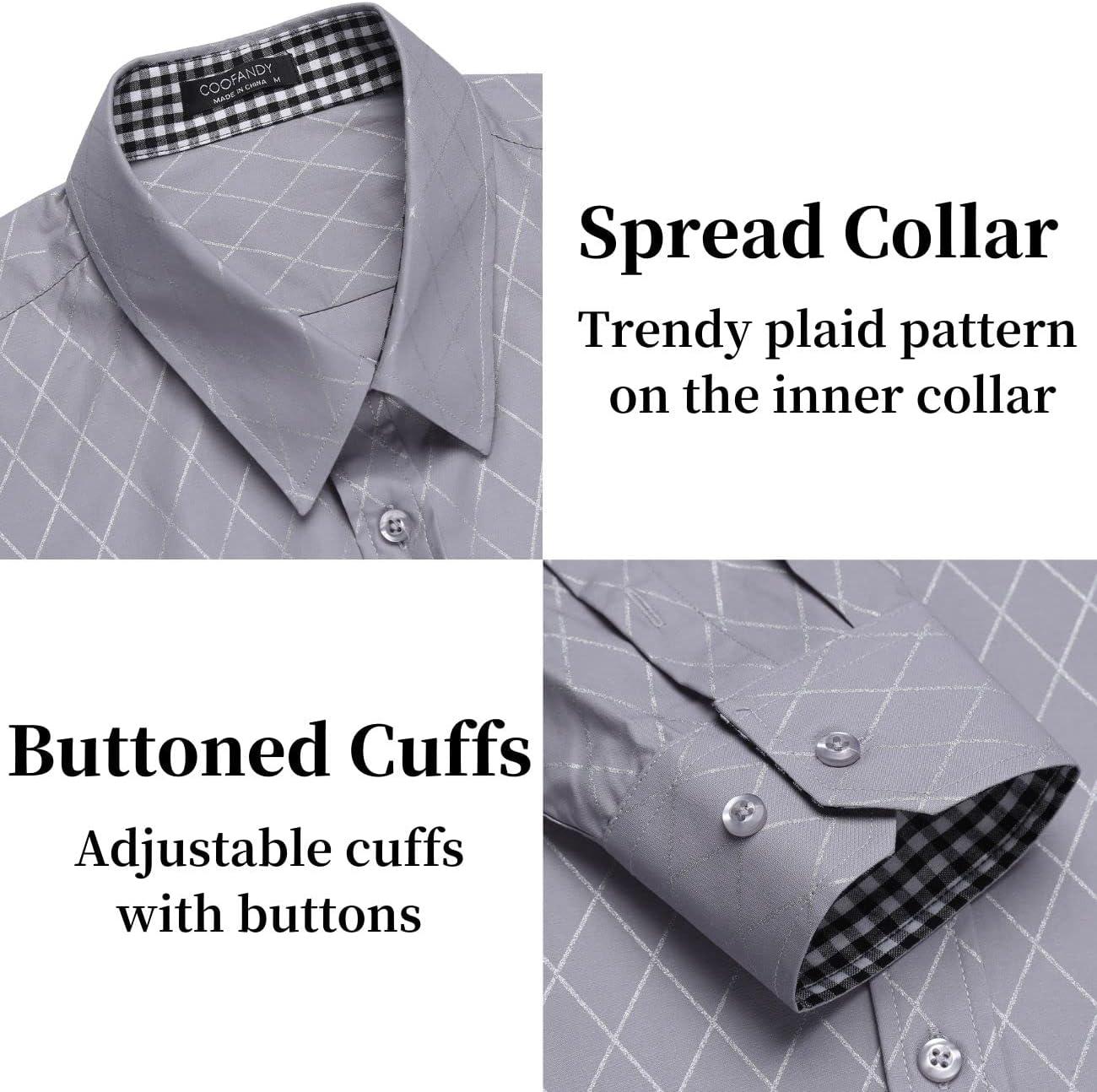 COOFANDY Men's Pattern Dress Shirt Long Sleeve Casual Button Down Formal Shirts(Light Grey)
