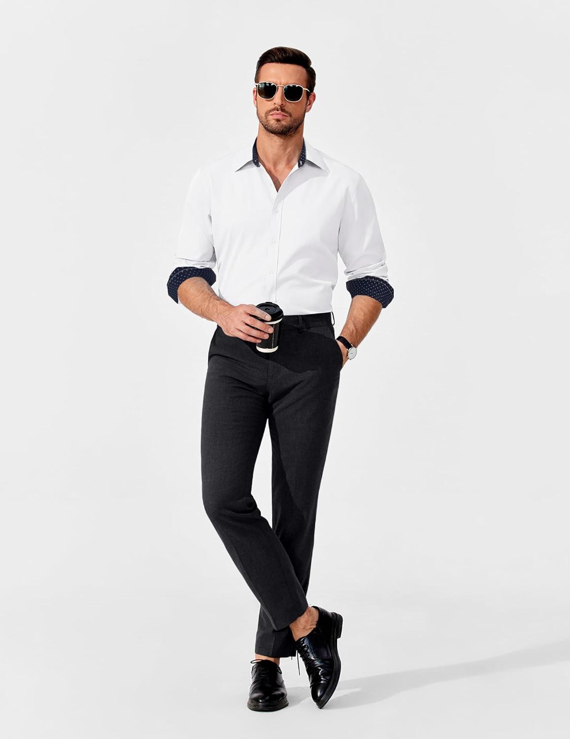 COOFANDY Men's Pattern Dress Shirt Long Sleeve Casual Button Down Formal Shirts(White Solid 4)