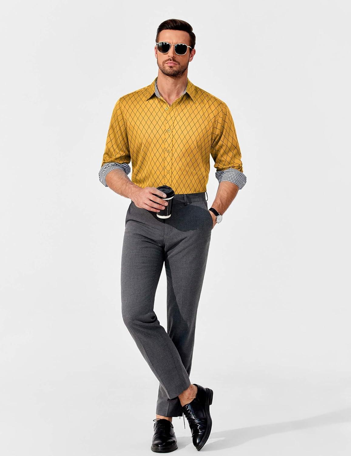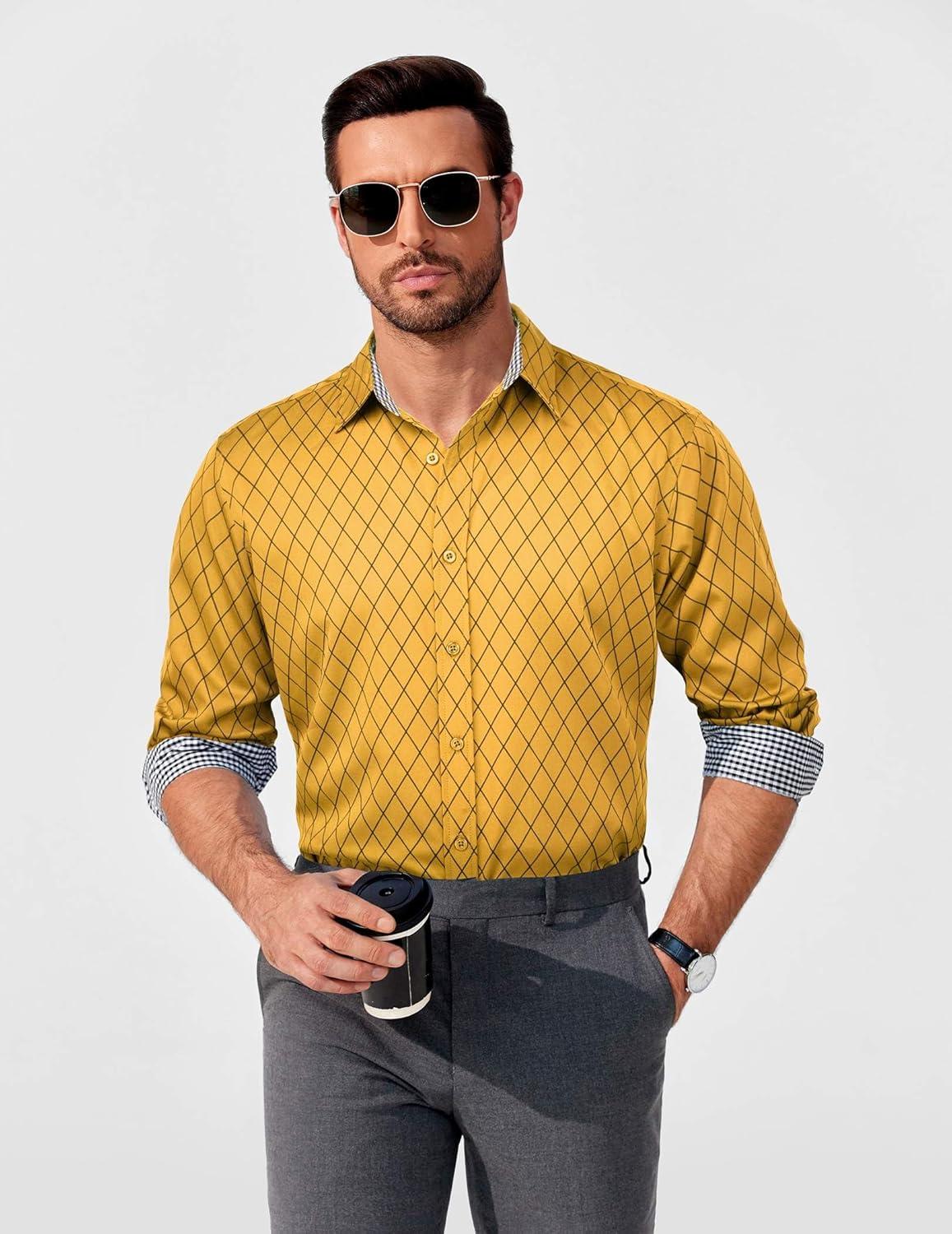 imageCOOFANDY Mens Pattern Dress Shirt Long Sleeve Casual Button Down Formal ShirtsYellow