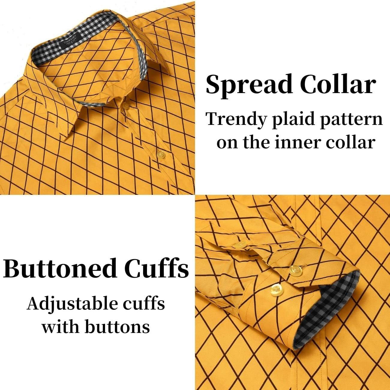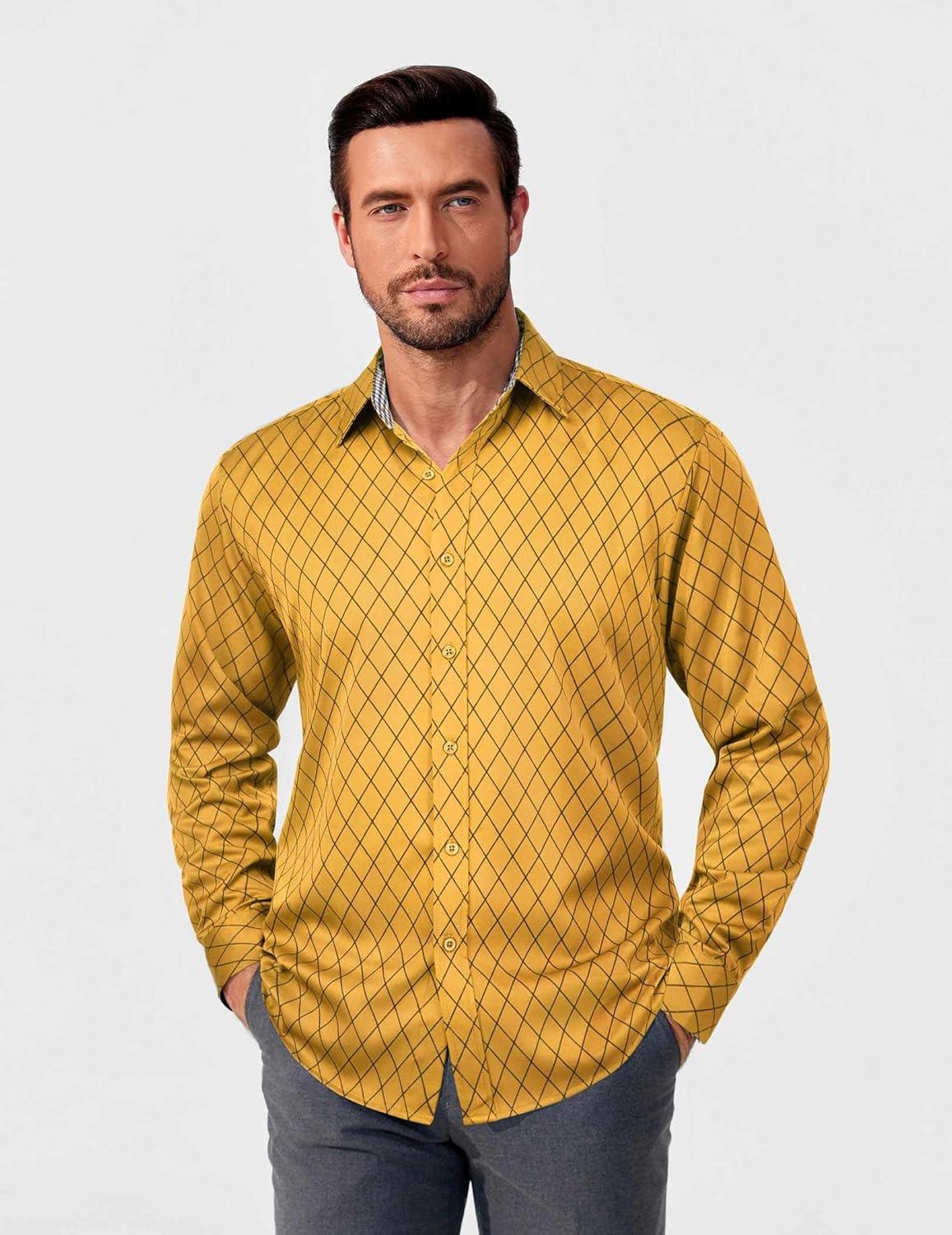 COOFANDY Men’s Pattern Dress Shirt Long Sleeve Casual Button Down Formal Shirts(Yellow)