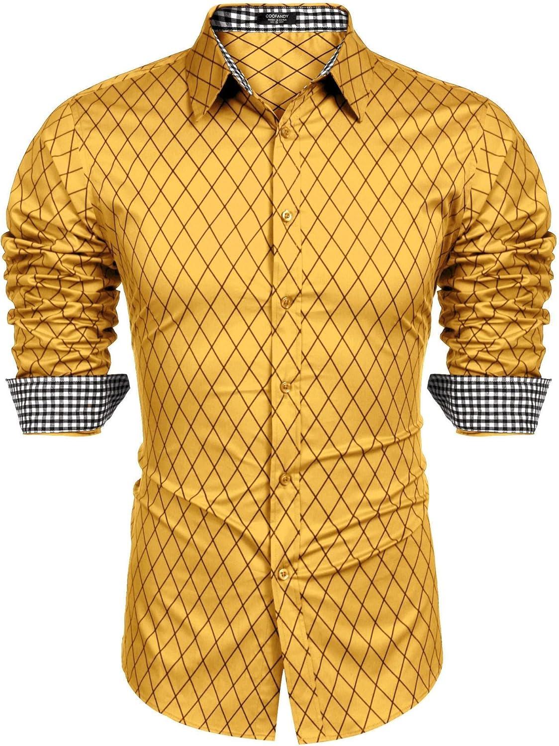COOFANDY Men's Pattern Dress Shirt Long Sleeve Casual Button Down Formal Shirts(Yellow)