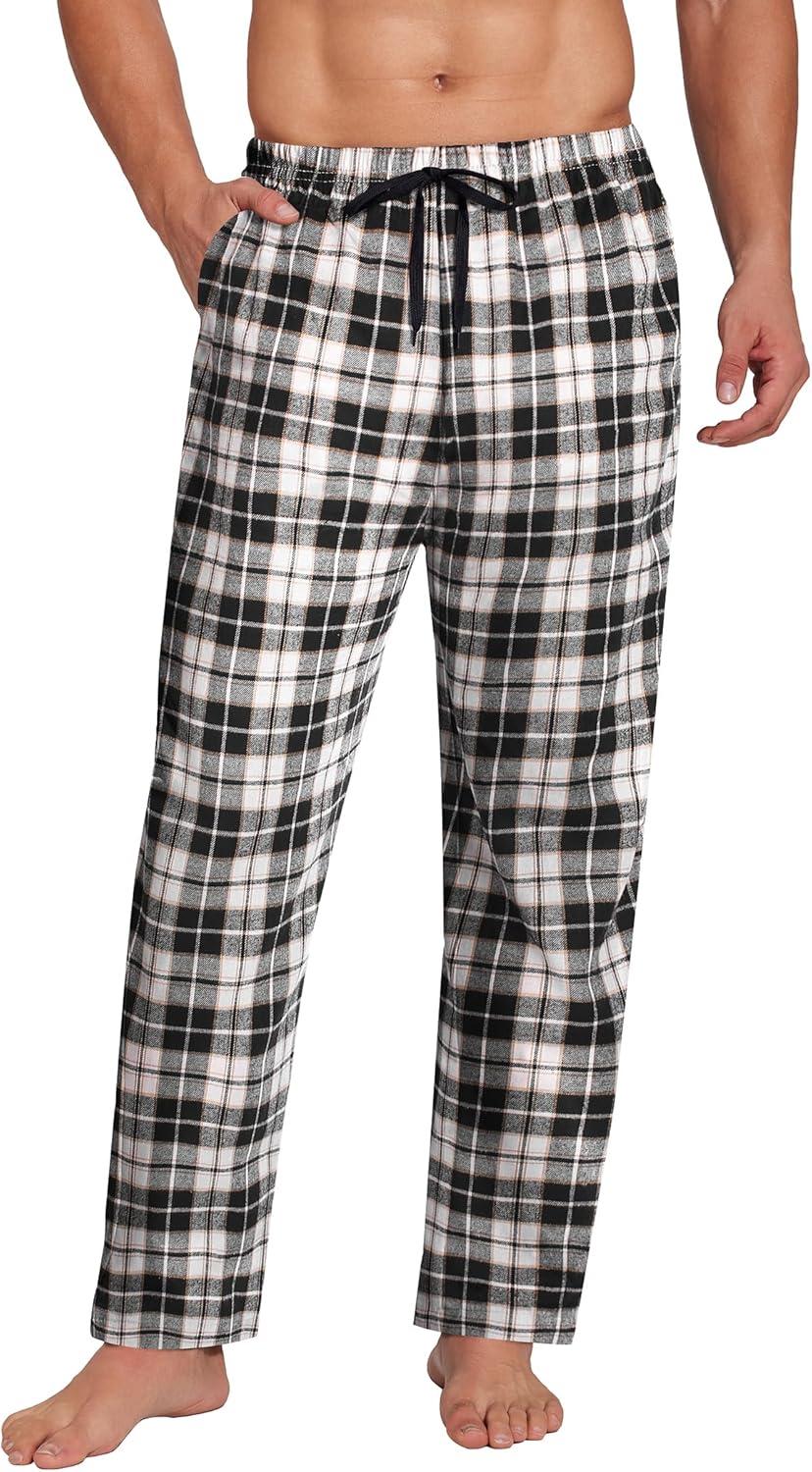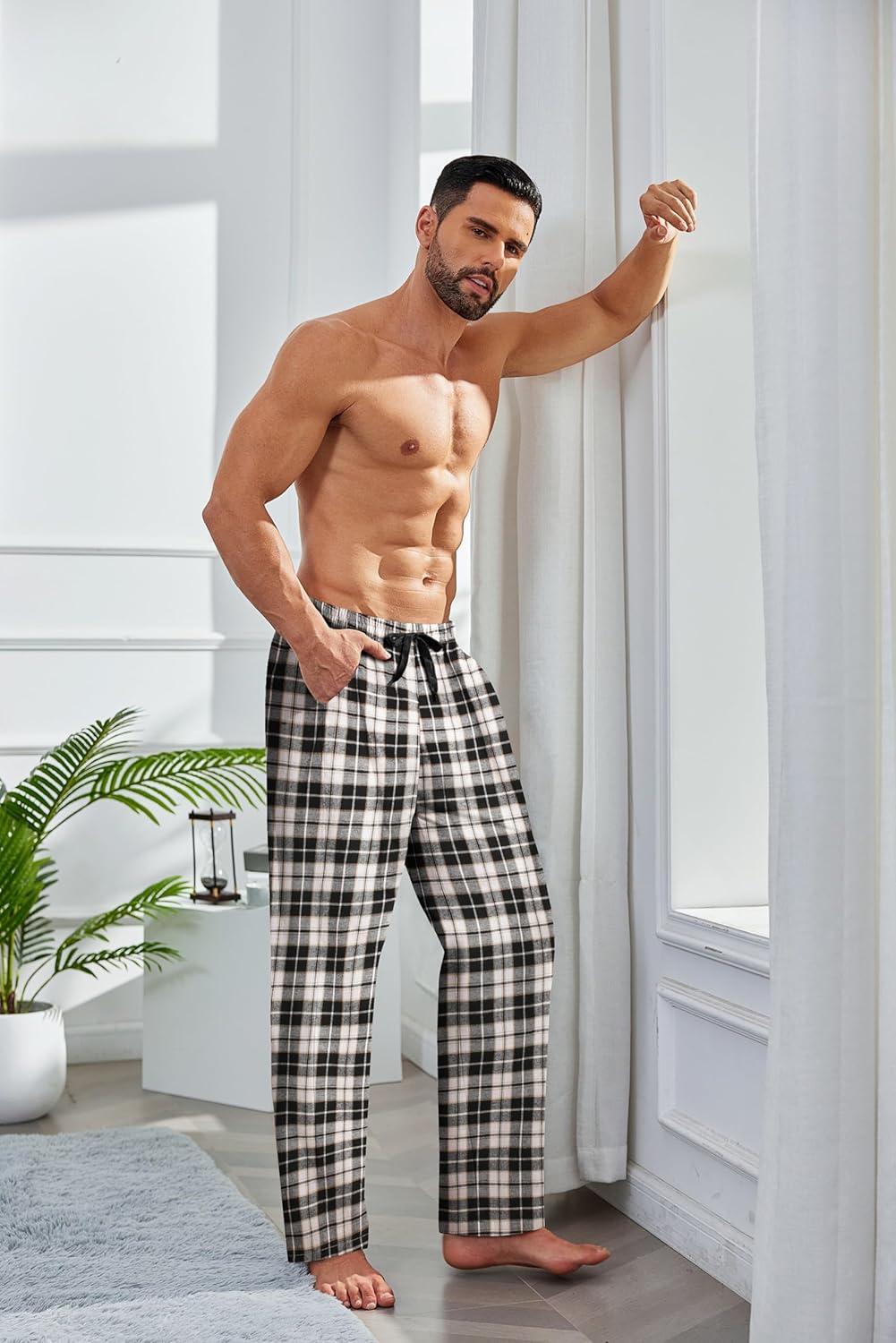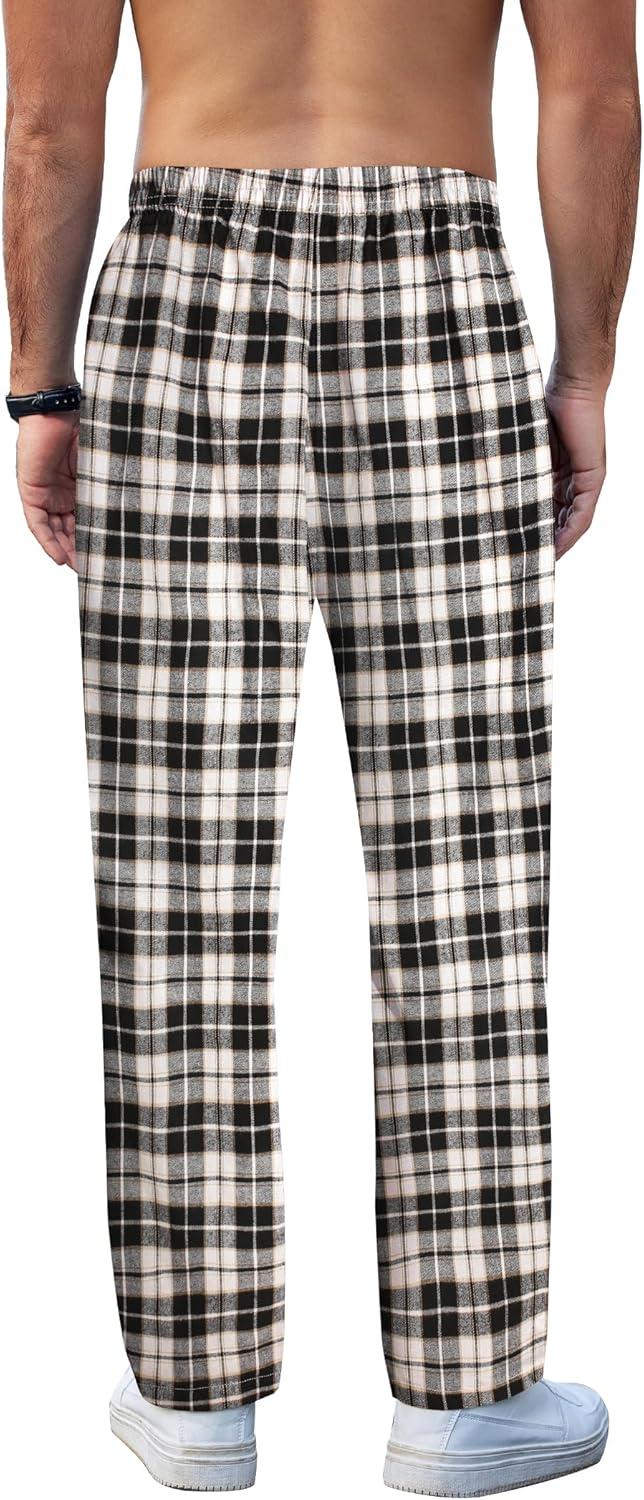 COOFANDY Men's Plaid Casual Pants Soft Cotton Pajama Pants Drawstring Checkered Lounge Sweatpant with Pockets(Apricot Black White Plaid)