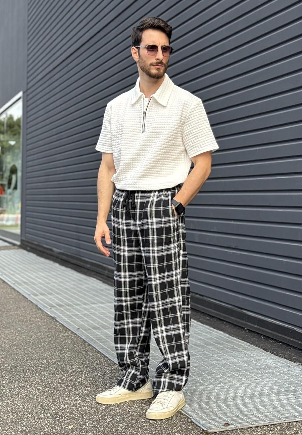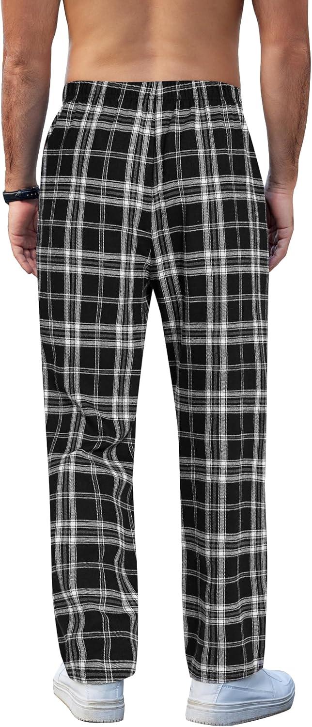 COOFANDY Men's Plaid Casual Pants Soft Cotton Pajama Pants Drawstring Checkered Lounge Sweatpant with Pockets(Black White Grey Plaid)