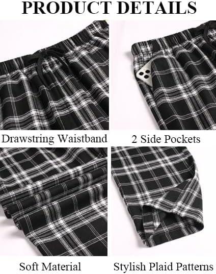 imageCOOFANDY Mens Plaid Casual Pants Soft Cotton Pajama Pants Drawstring Checkered Lounge Sweatpant with PocketsGray Black White Plaid