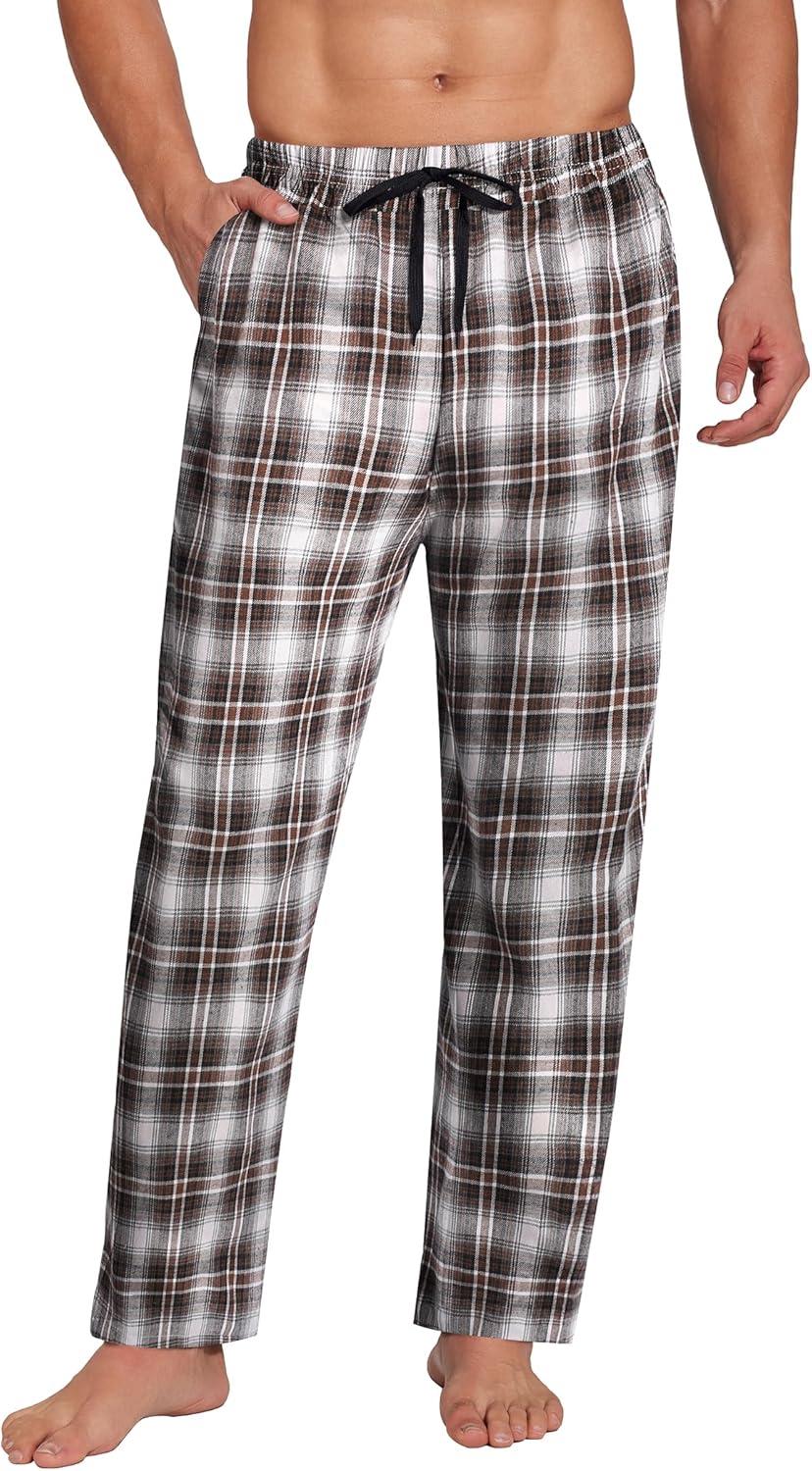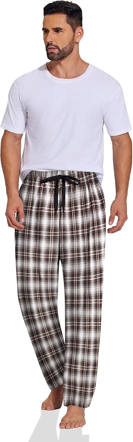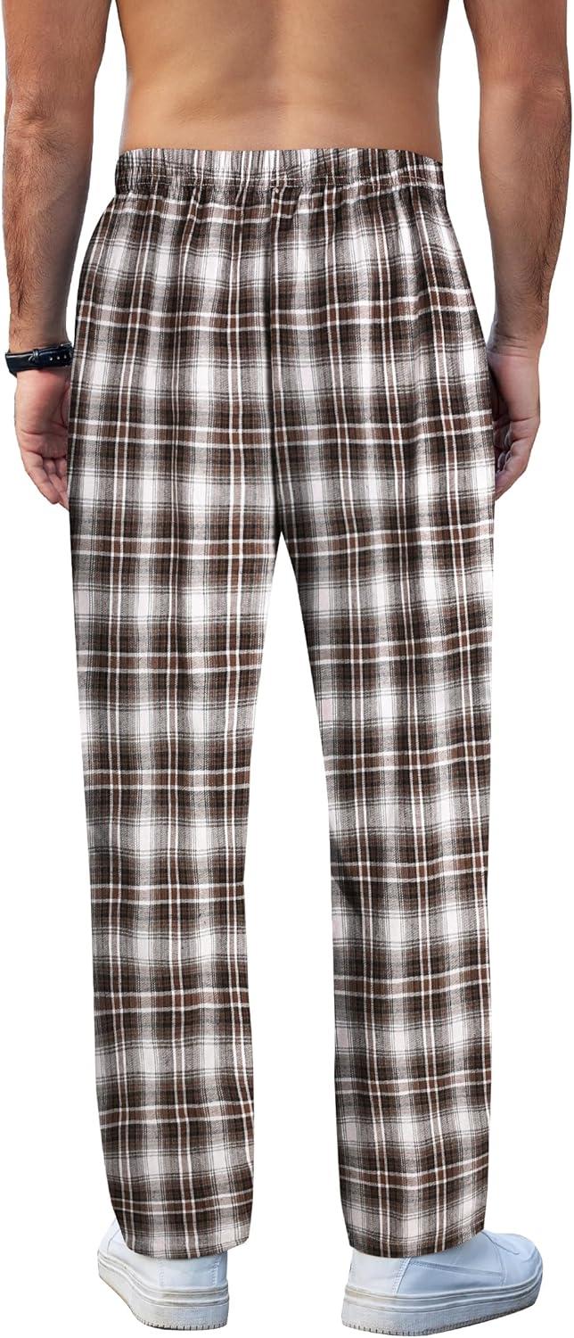COOFANDY Men's Plaid Casual Pants Soft Cotton Pajama Pants Drawstring Checkered Lounge Sweatpant with Pockets(Brown Black White Plaid)
