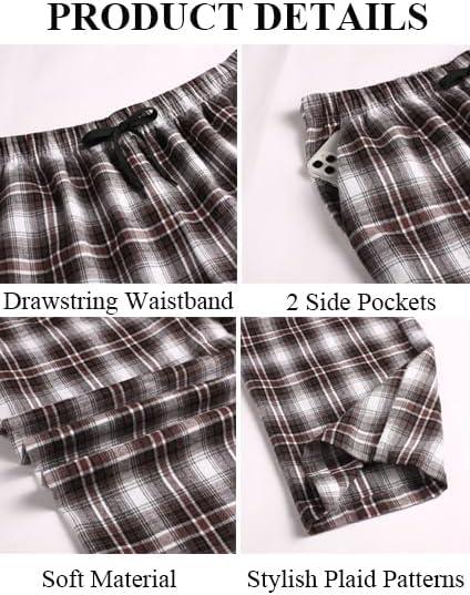imageCOOFANDY Mens Plaid Casual Pants Soft Cotton Pajama Pants Drawstring Checkered Lounge Sweatpant with PocketsBrown Black White Plaid