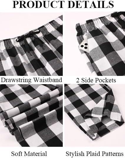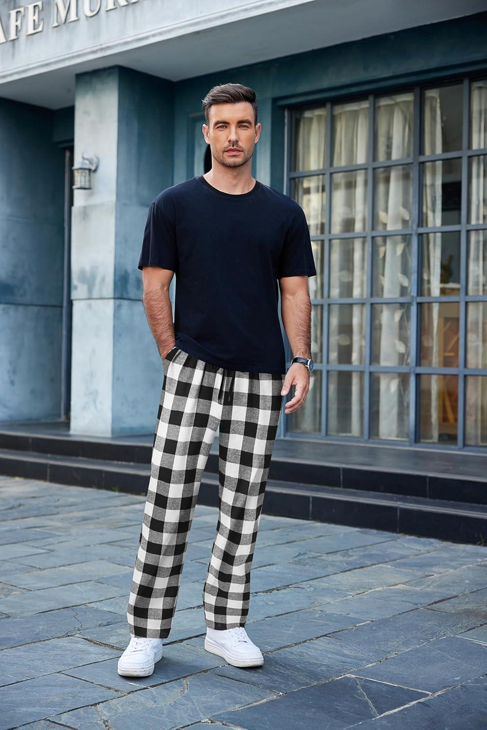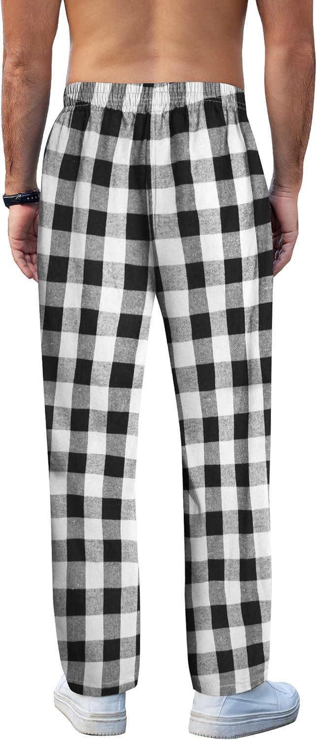 COOFANDY Men’s Plaid Casual Pants Soft Cotton Pajama Pants Drawstring Checkered Lounge Sweatpant with Pockets(Black White Grey Plaid)