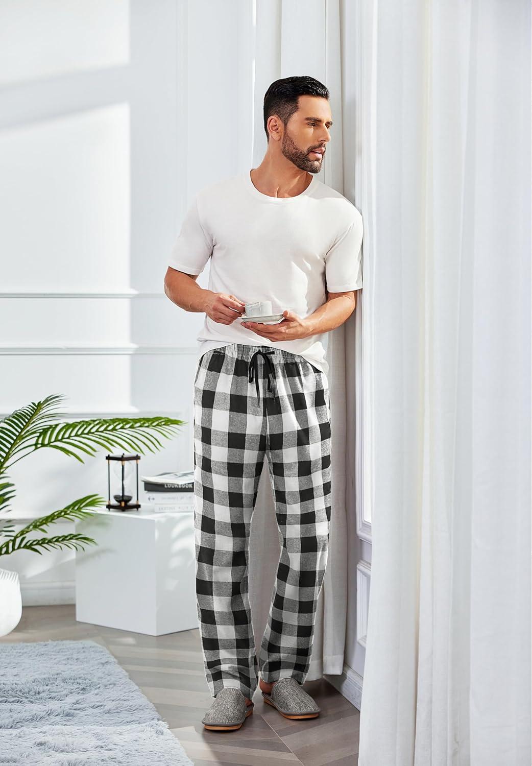 COOFANDY Men's Plaid Casual Pants Soft Cotton Pajama Pants Drawstring Checkered Lounge Sweatpant with Pockets(Gray Black White Plaid)