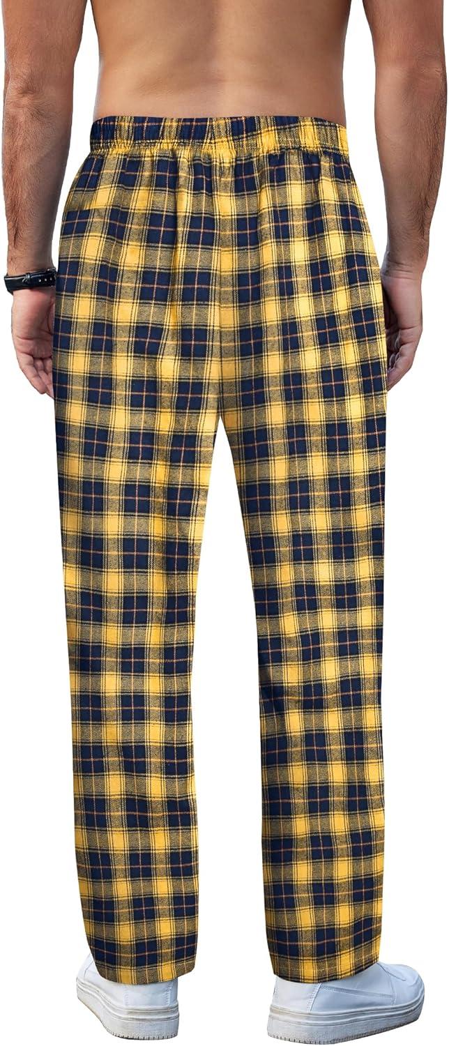 COOFANDY Men's Plaid Casual Pants Soft Cotton Pajama Pants Drawstring Checkered Lounge Sweatpant with Pockets(Navy Yellow Plaid)
