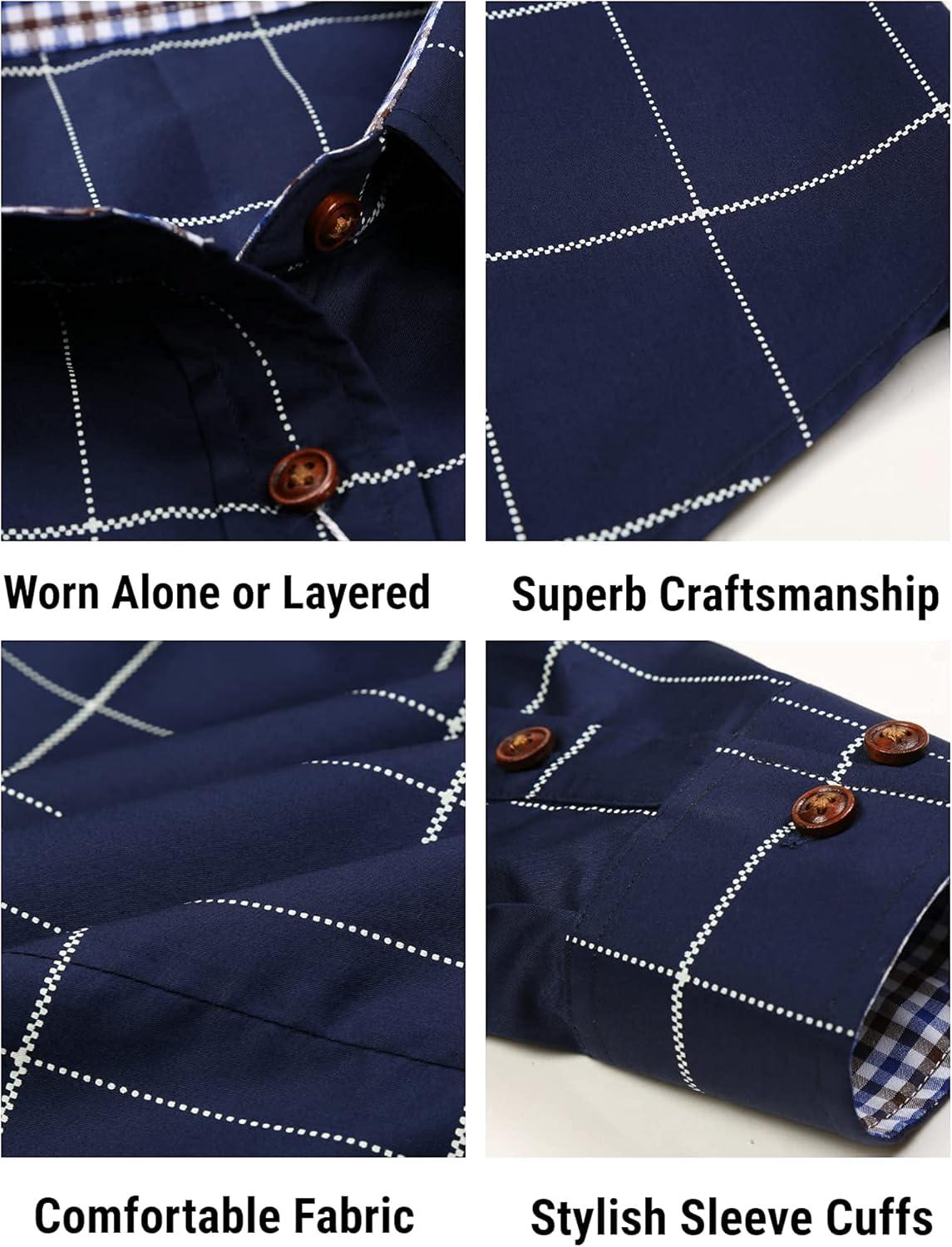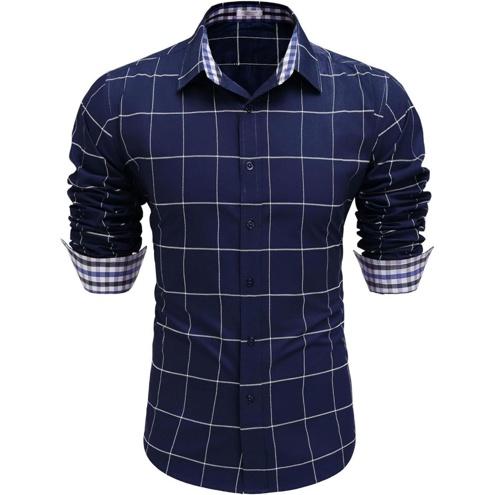 COOFANDY Mens Plaid Dress Shirt Long Sleeve Business Casual Regular Fit Button Down Shirts(Blue)