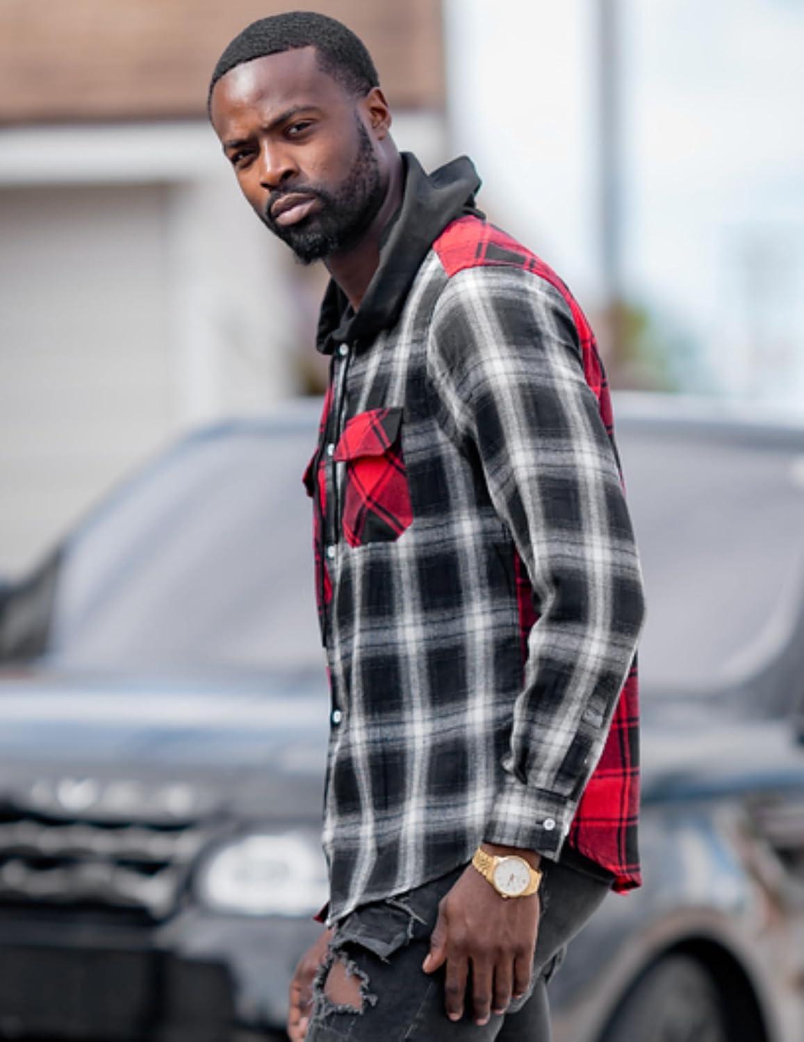COOFANDY Men’s Plaid Hoodie Flannel Shirt Jacket Long Sleeve Casual Fashion Button Shirts(Black 1 & Red)