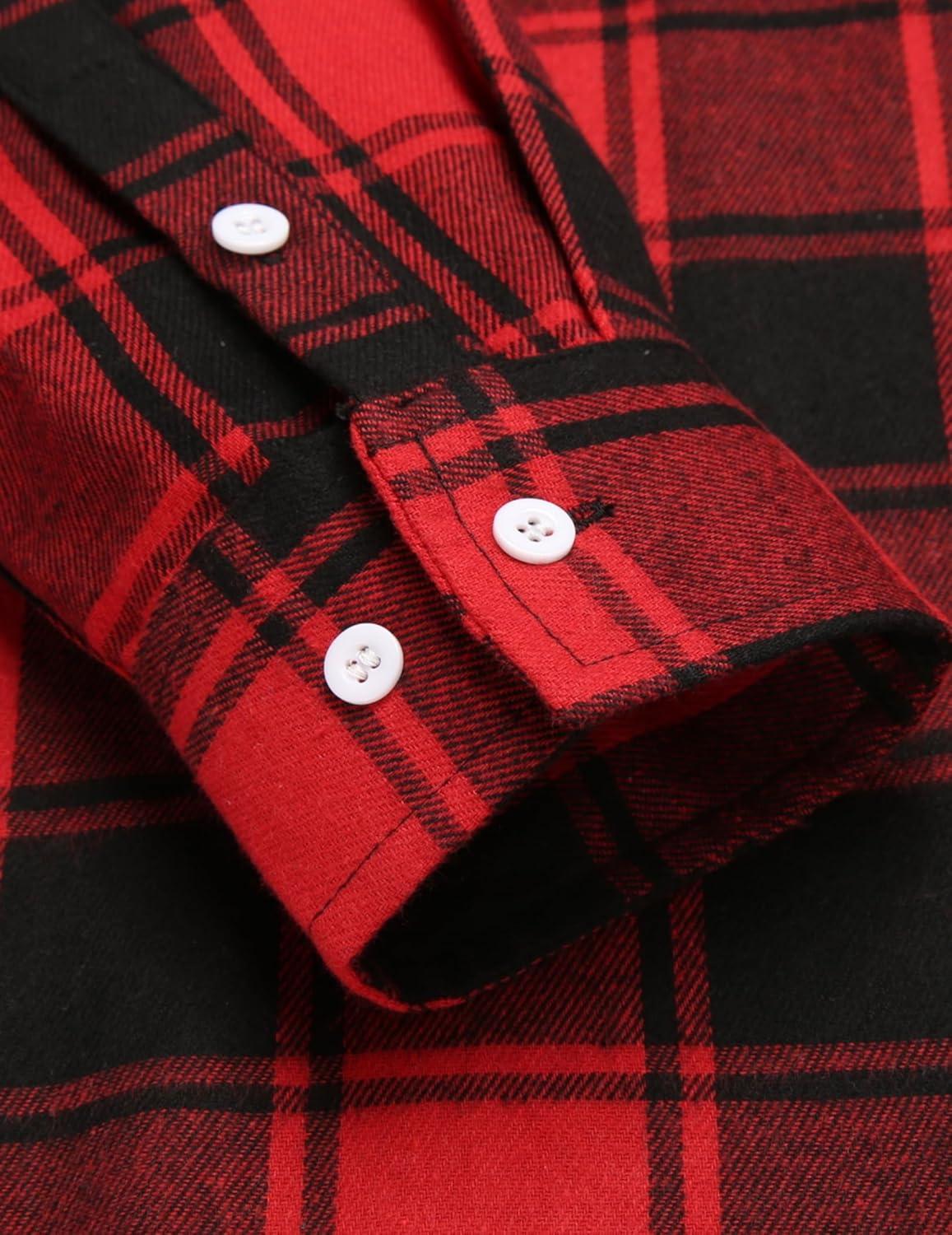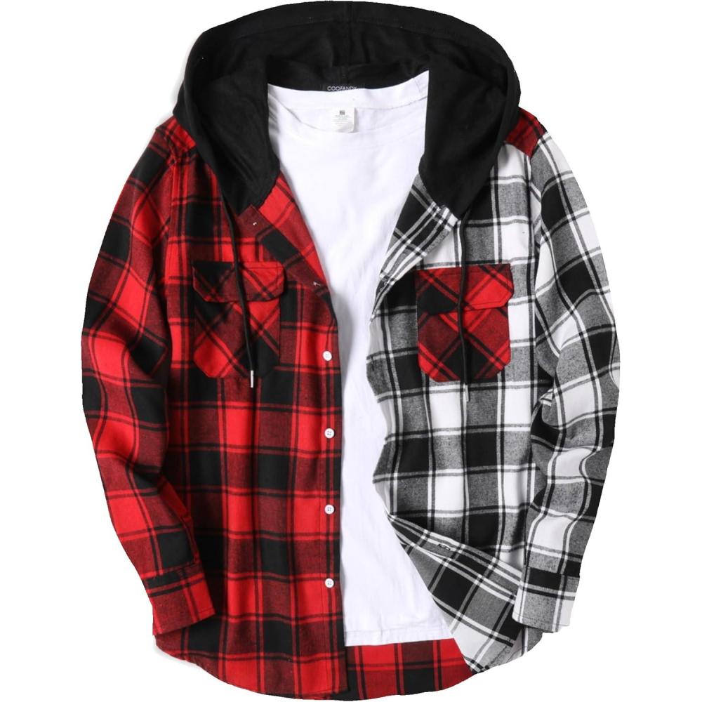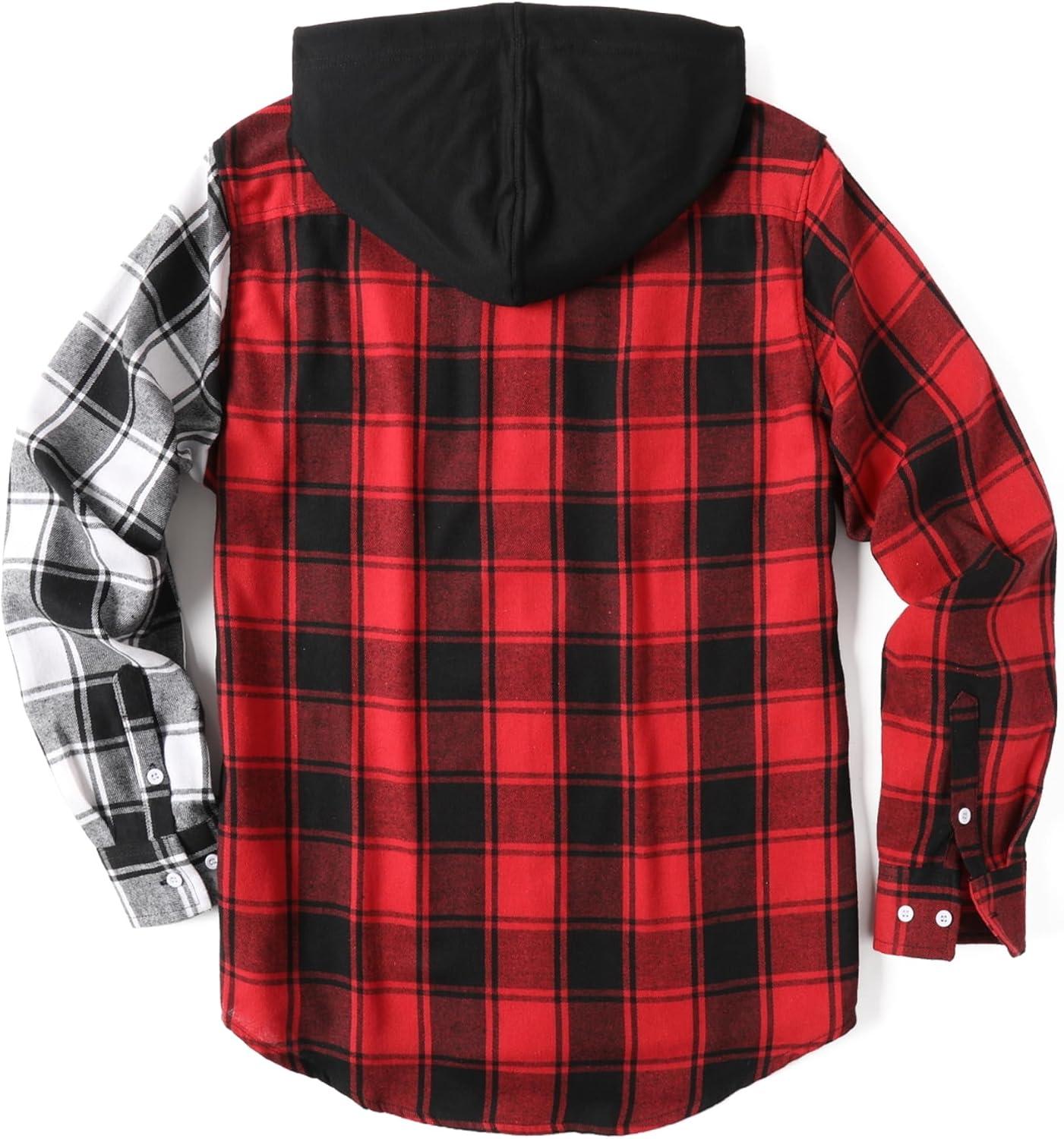 COOFANDY Men’s Plaid Hoodie Flannel Shirt Jacket Long Sleeve Casual Fashion Button Shirts(Black 1 & Red)