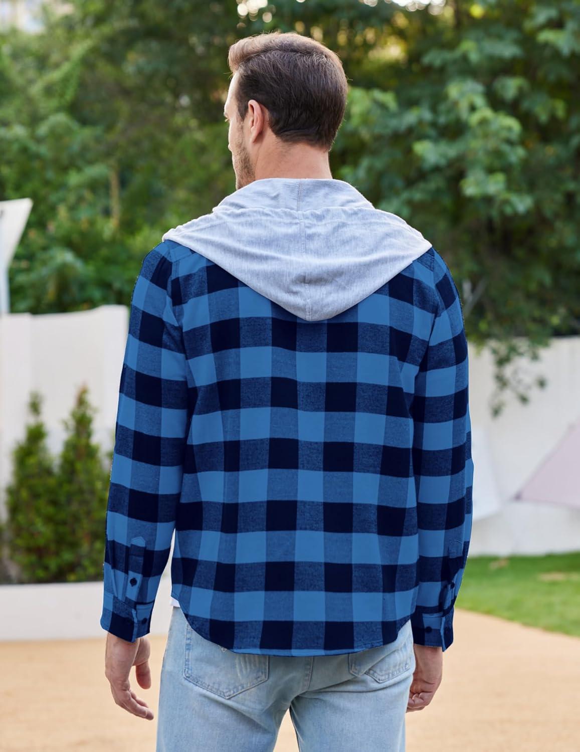 COOFANDY Men's Plaid Hoodie Flannel Shirt Jacket Long Sleeve Casual Fashion Button Shirts(Blue)