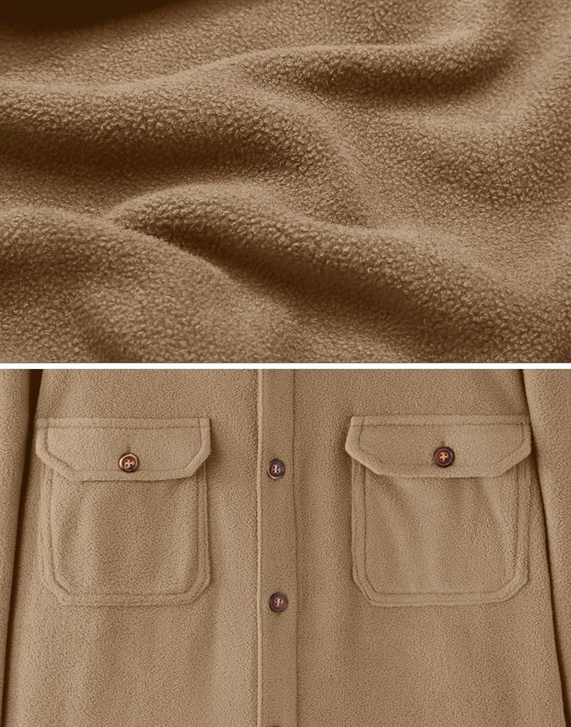 COOFANDY Men's Polar Fleece Shacket Long Sleeve Casual Button Down Shirt Jacket with Pockets(Khaki)