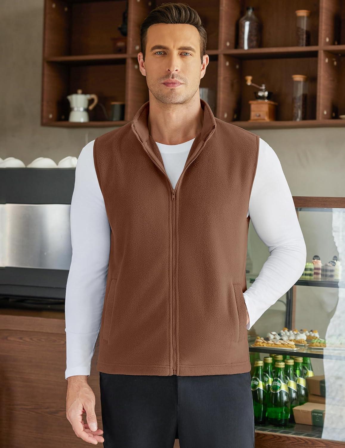 COOFANDY Men's Polar Fleece Vest Lightweight Sleeveless Zip Up Jacket Casual Outerwear Outdoor Golf Vests(Baked Clay)