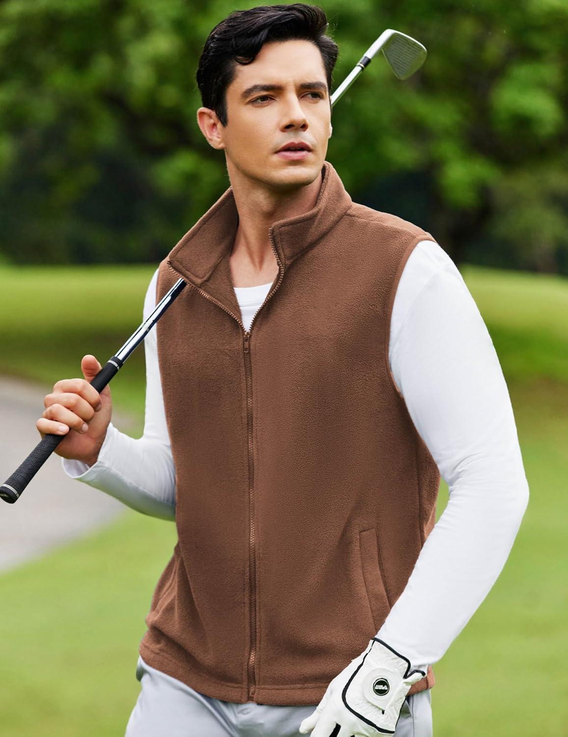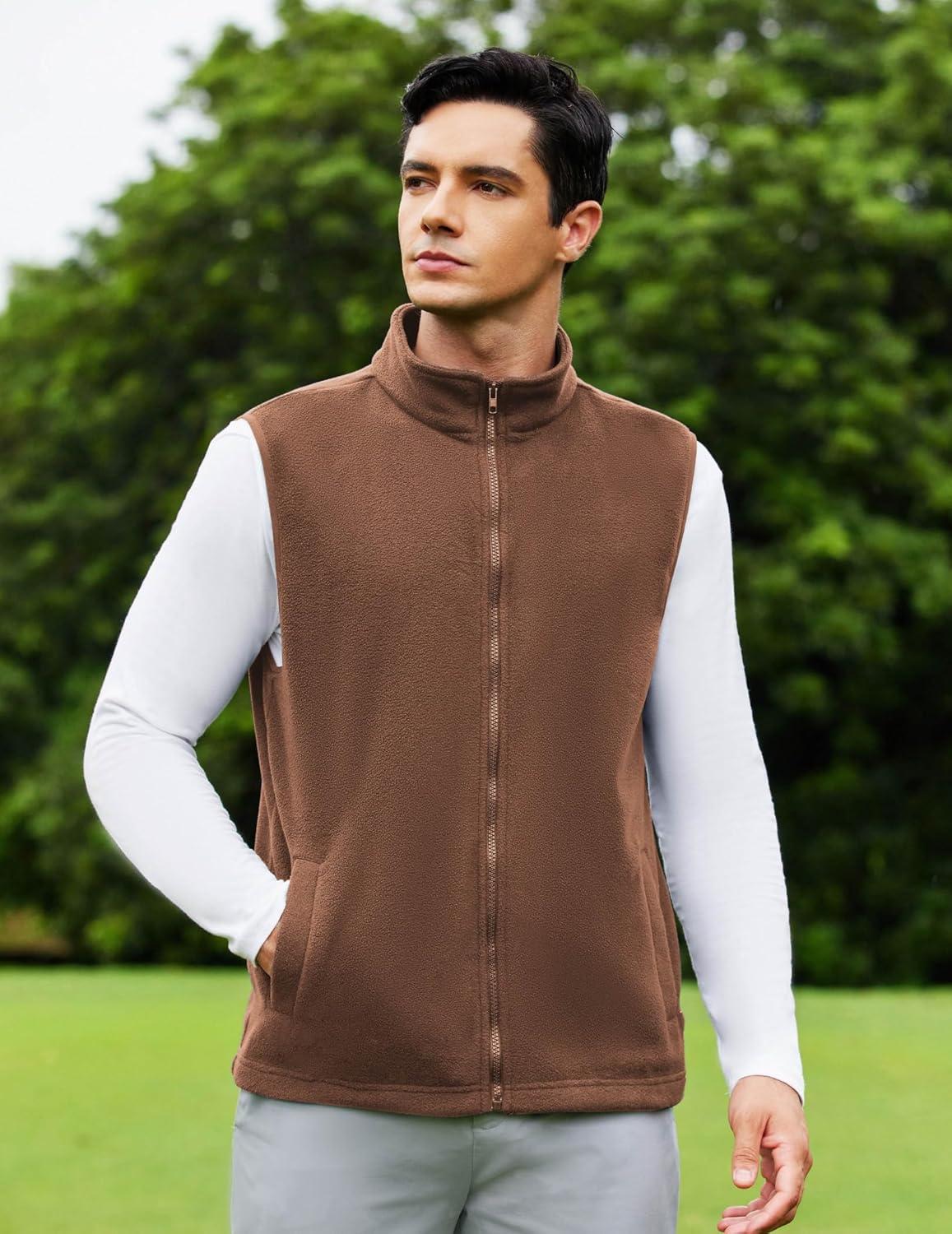 COOFANDY Men’s Polar Fleece Vest Lightweight Sleeveless Zip Up Jacket Casual Outerwear Outdoor Golf Vests(Baked Clay)