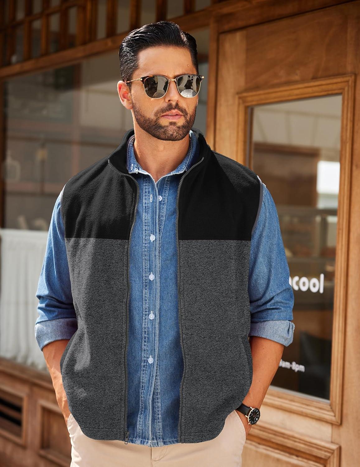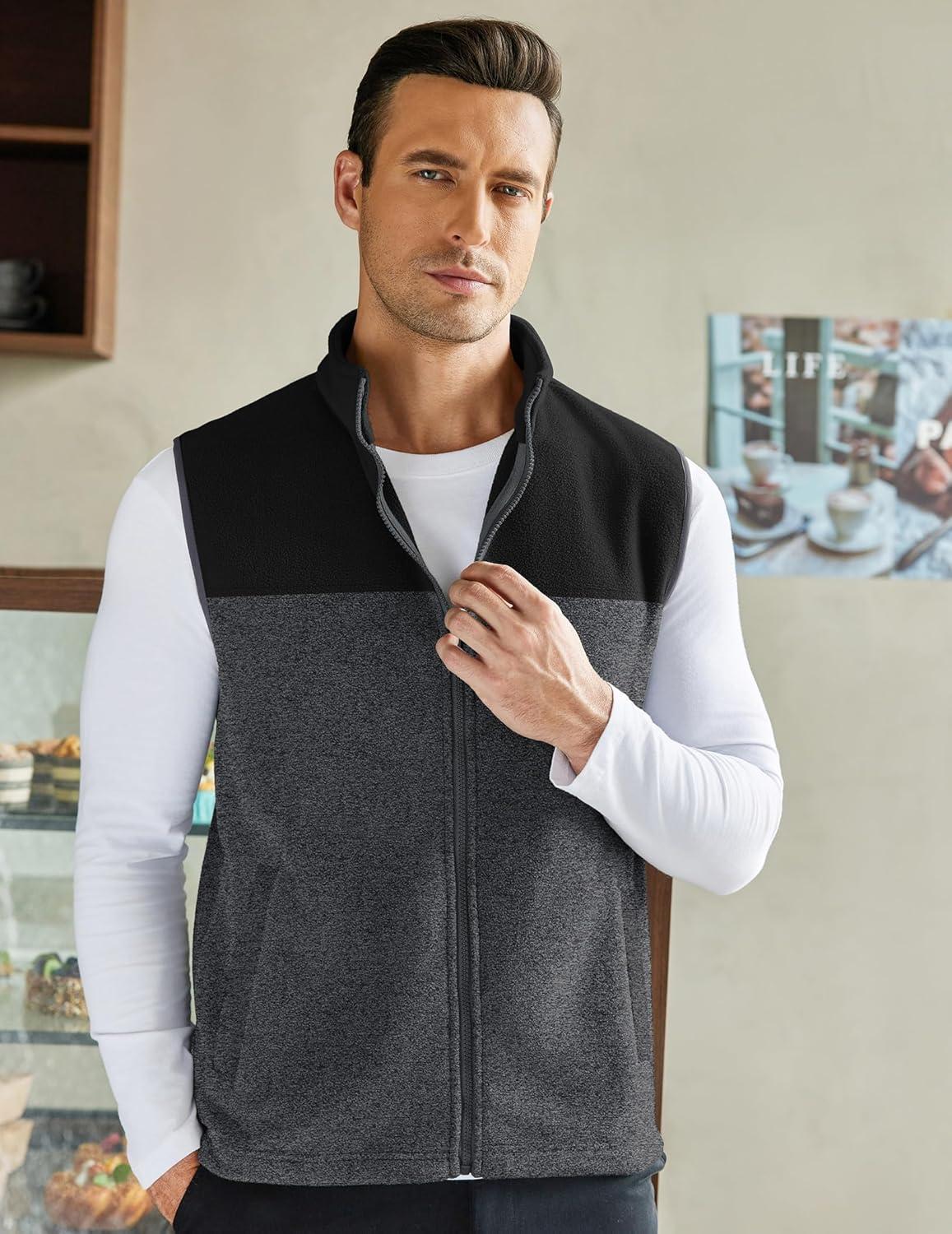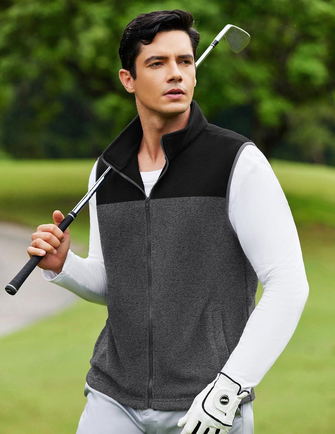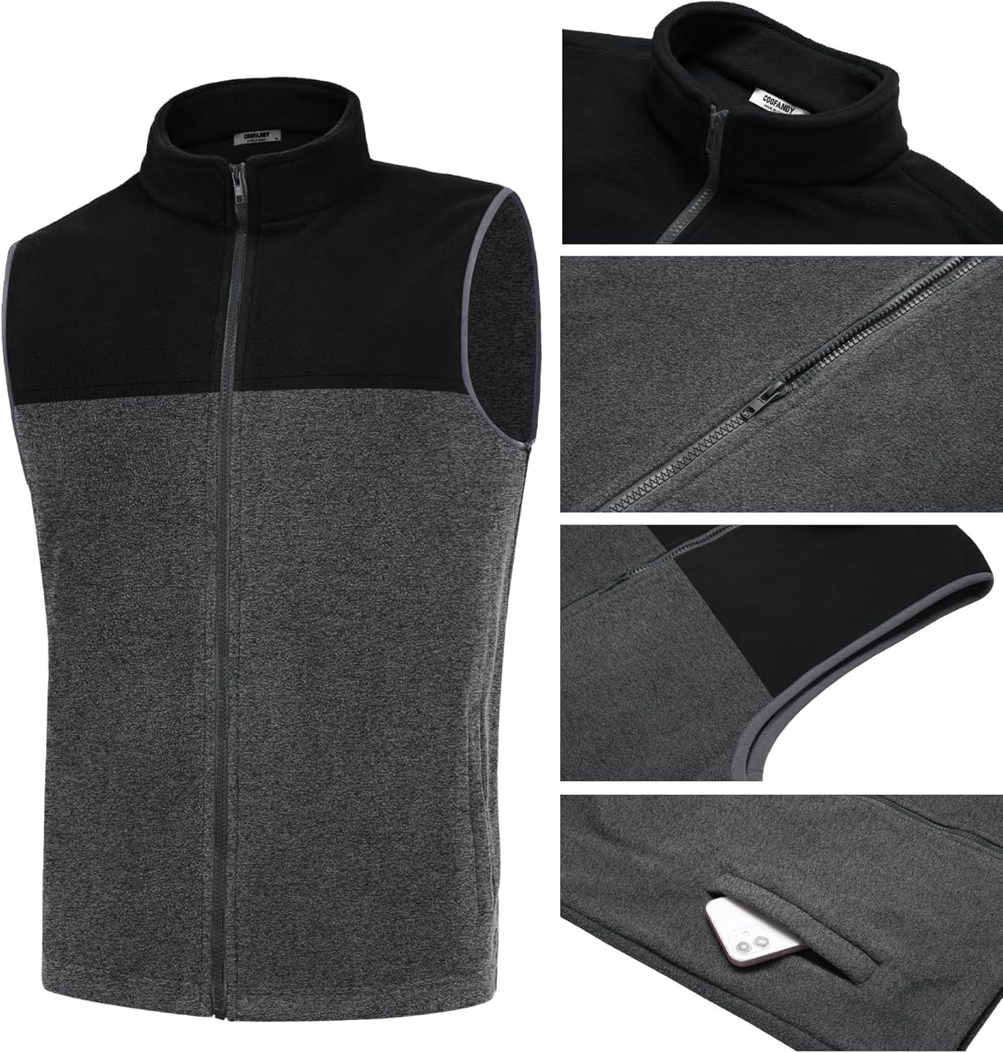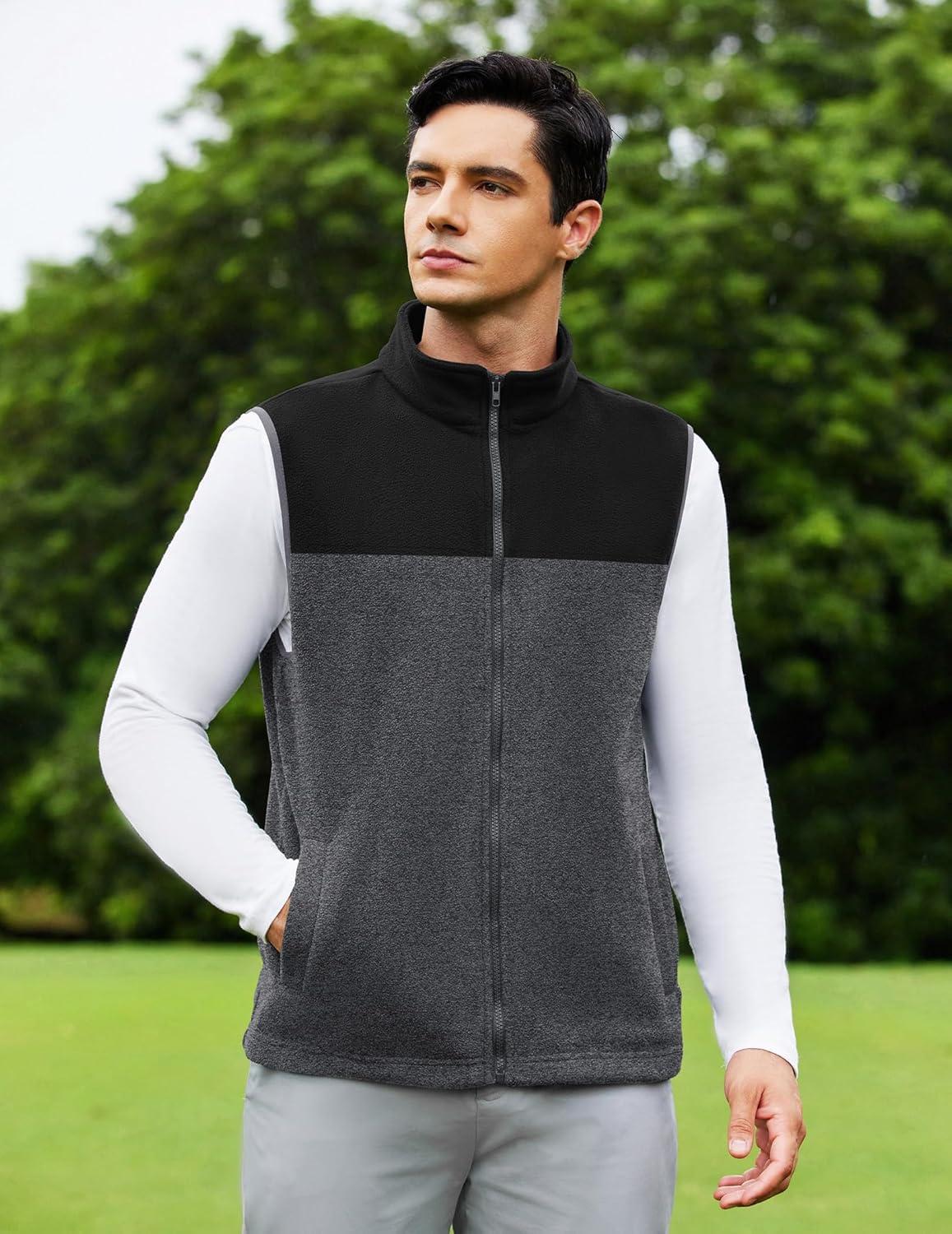 COOFANDY Men's Polar Fleece Vest Lightweight Sleeveless Zip Up Jacket Casual Outerwear Outdoor Golf Vests(Black/Charcoal)