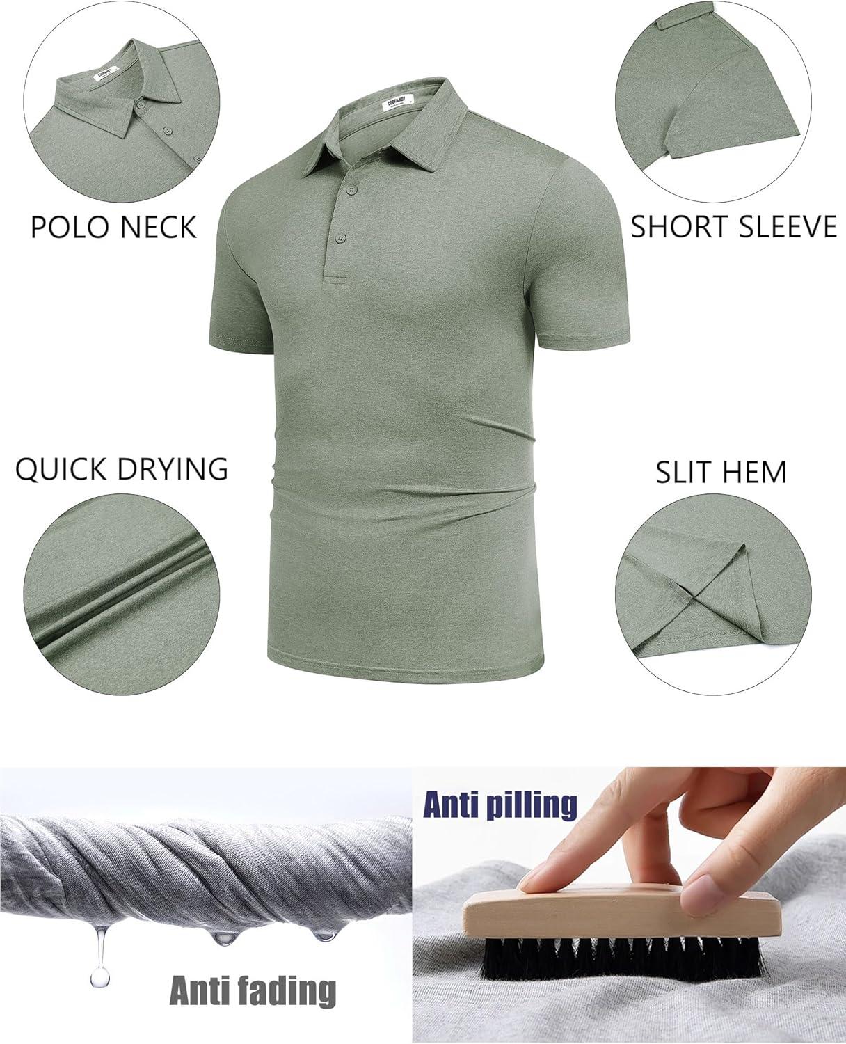 COOFANDY Men's Polo Shirt Golf Quick Dry Performance Short Sleeve Moisture Wicking Athletic Polo Collared Tennis T-Shirt(Army Green)