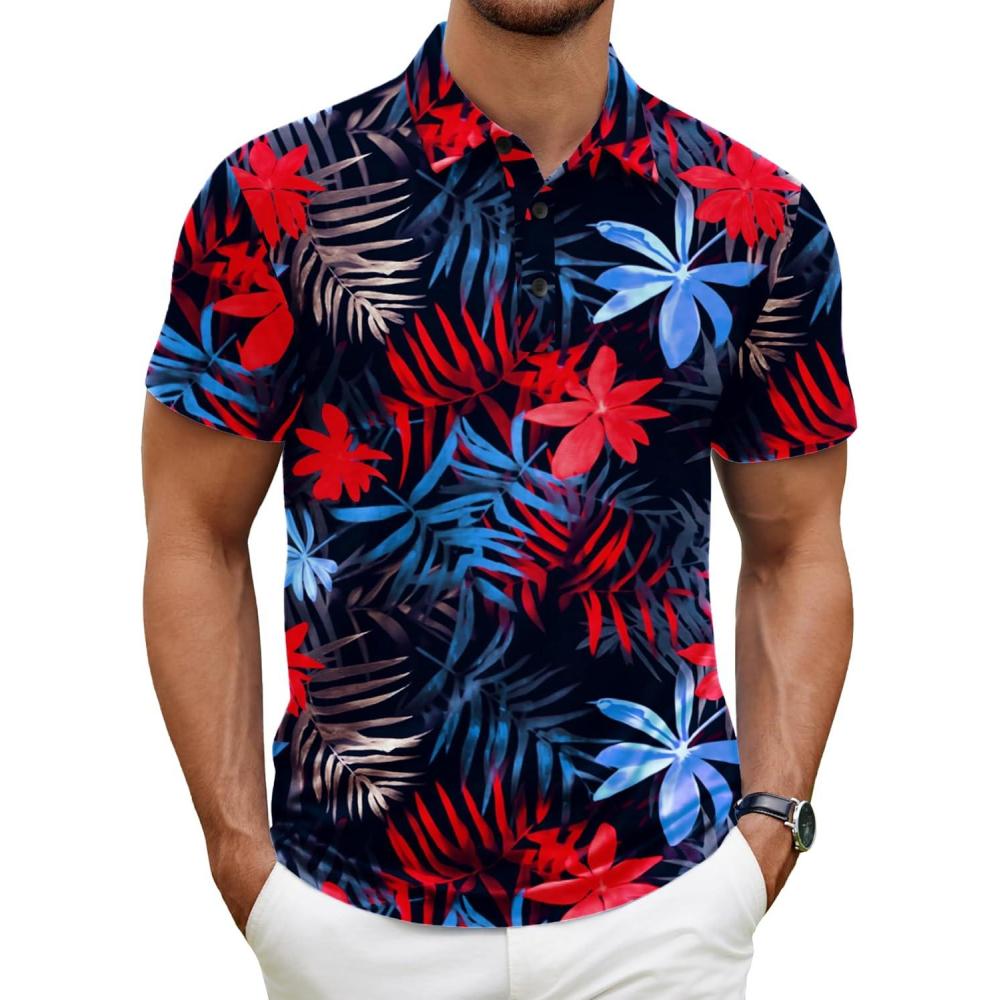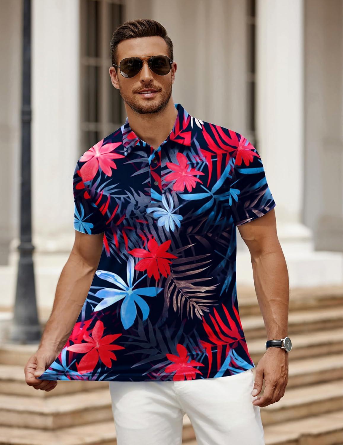 COOFANDY Men's Polo Shirt Golf Quick Dry Performance Short Sleeve Moisture Wicking Athletic Polo Collared Tennis T-Shirt(Colorful Tropical Leaves)