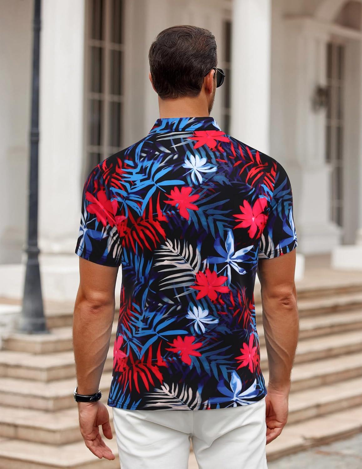 COOFANDY Men’s Polo Shirt Golf Quick Dry Performance Short Sleeve Moisture Wicking Athletic Polo Collared Tennis T-Shirt(Colorful Tropical Leaves)