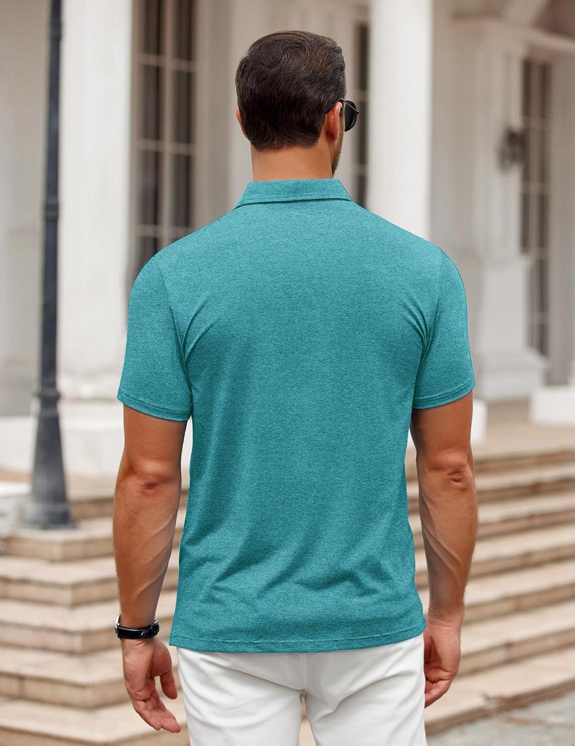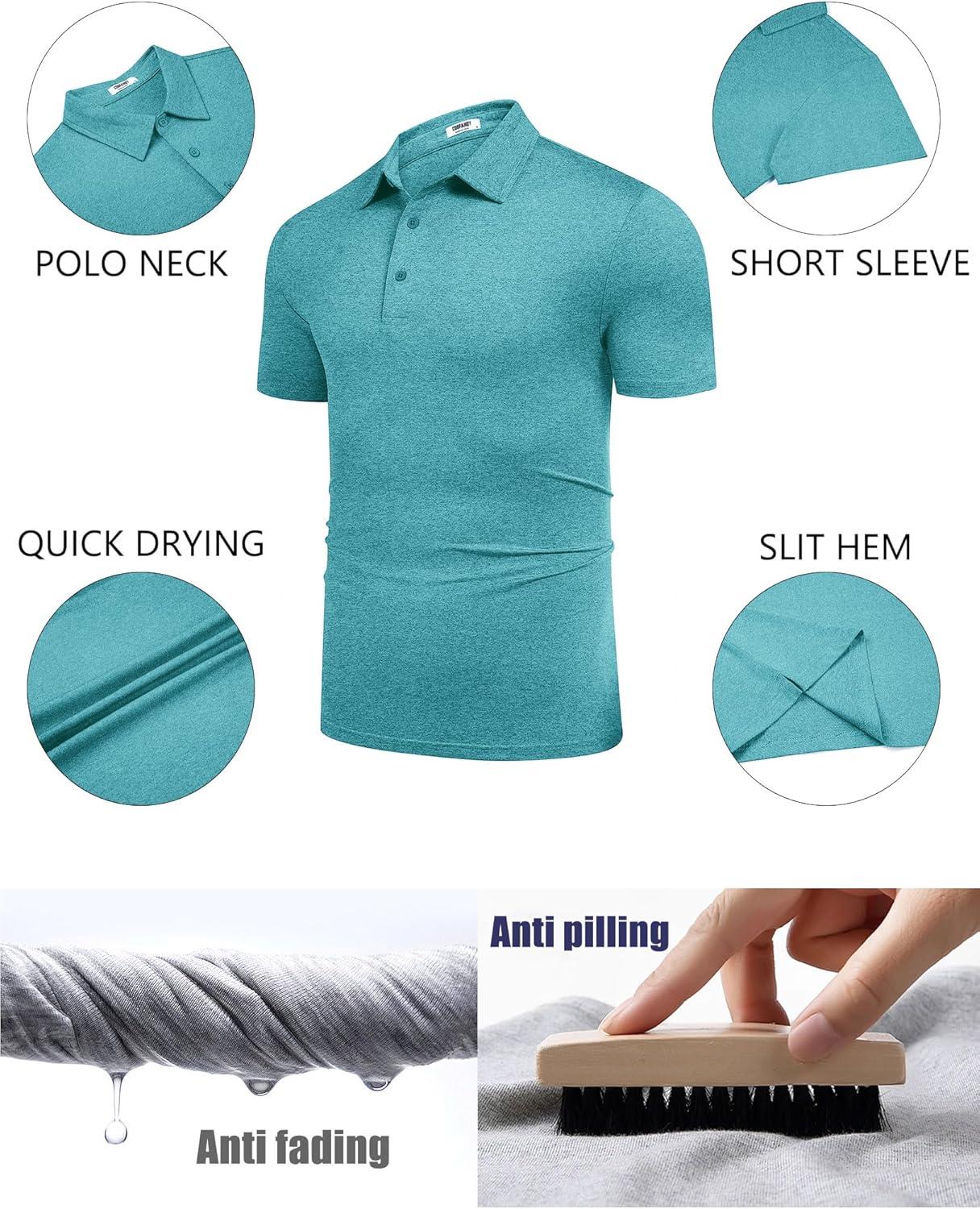 COOFANDY Men's Polo Shirt Golf Quick Dry Performance Short Sleeve Moisture Wicking Athletic Polo Collared Tennis T-Shirt(Teal Green)