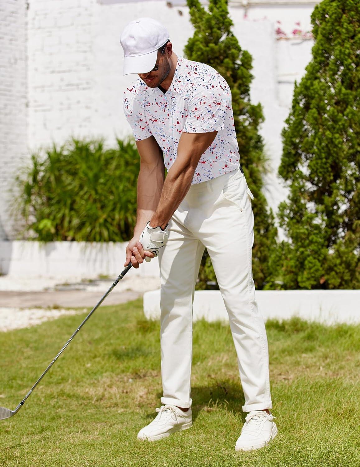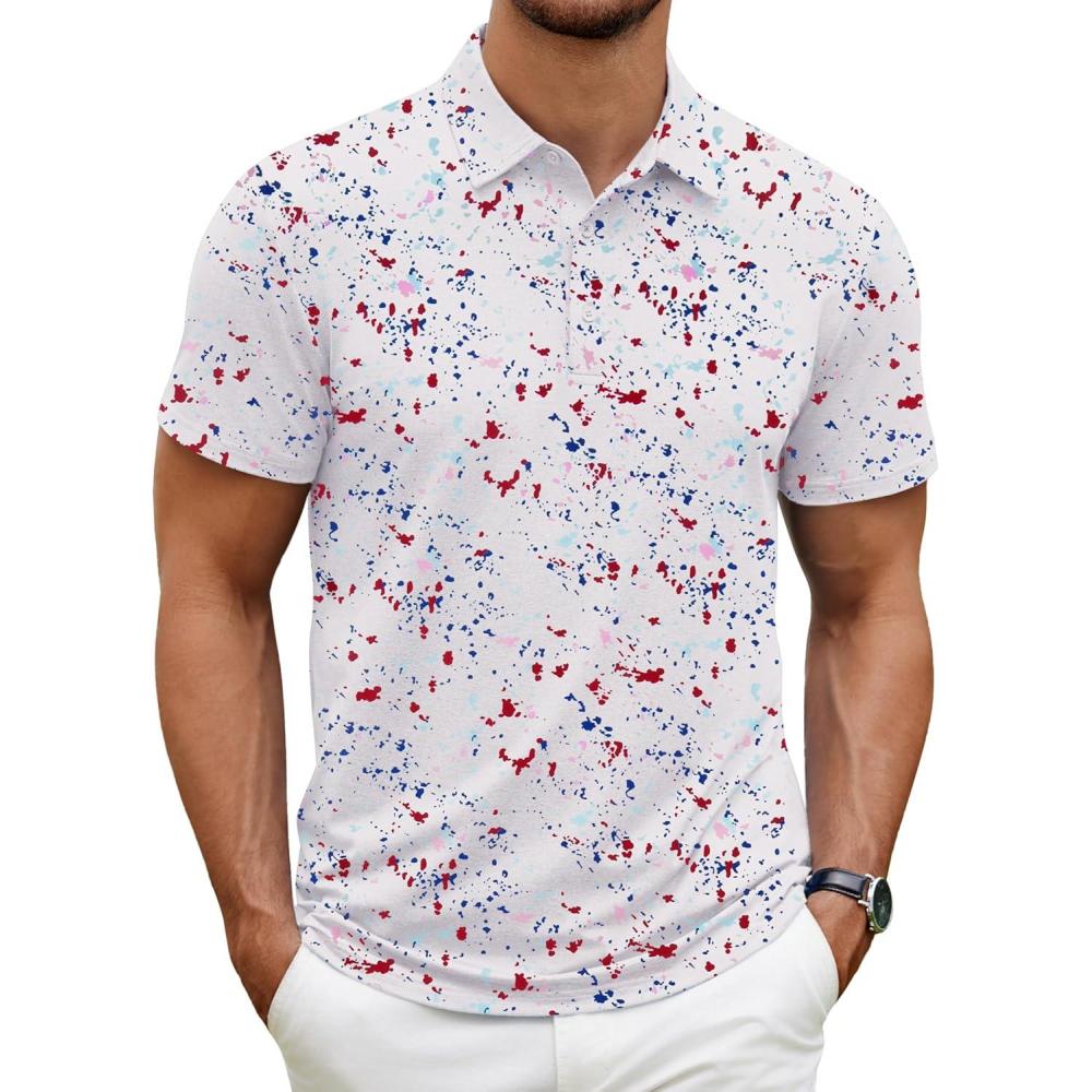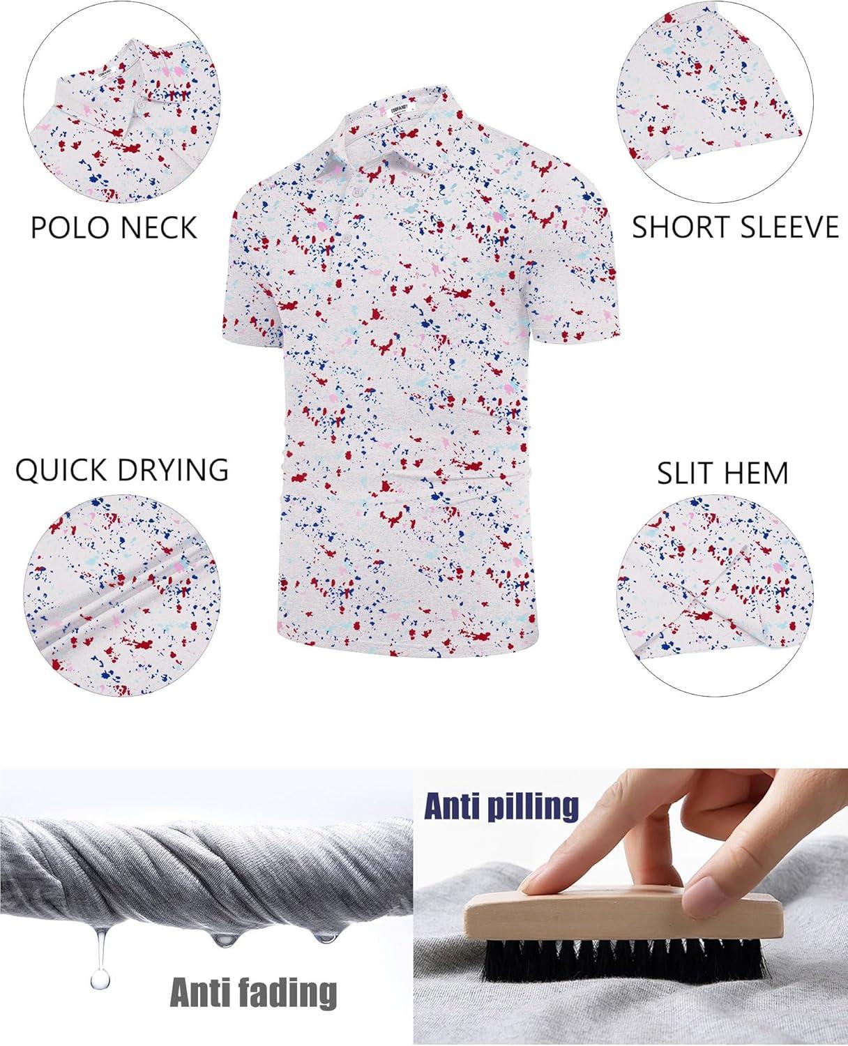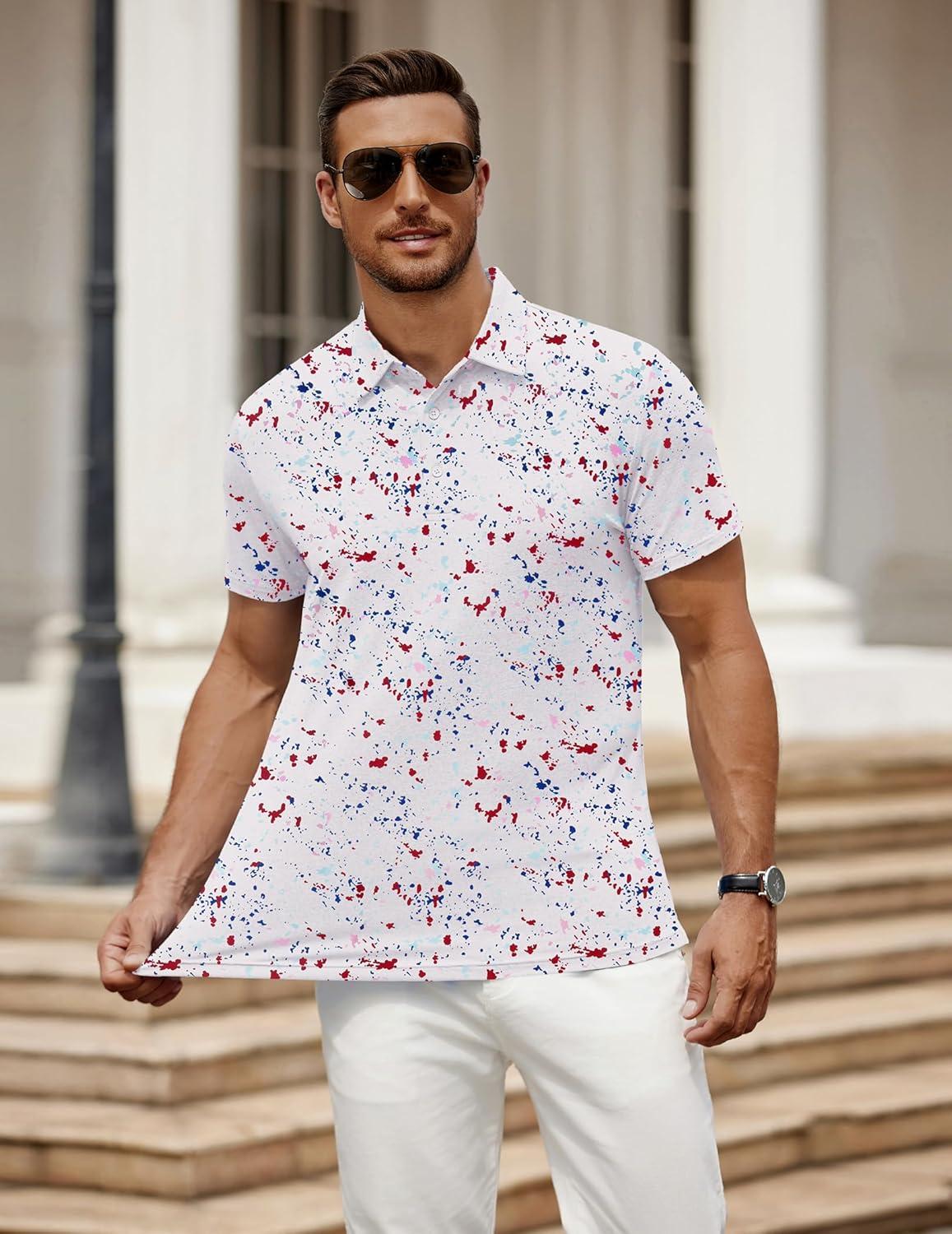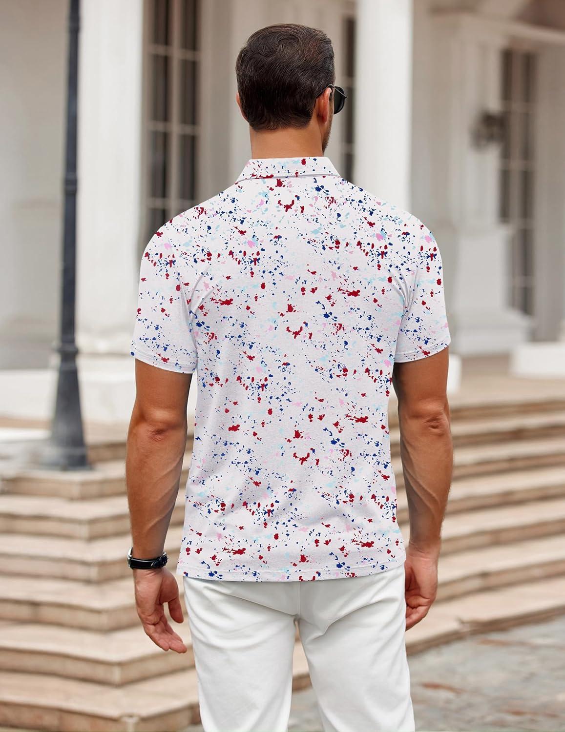 COOFANDY Men's Polo Shirt Golf Quick Dry Performance Short Sleeve Moisture Wicking Athletic Polo Collared Tennis T-Shirt(White Paint Splatter)