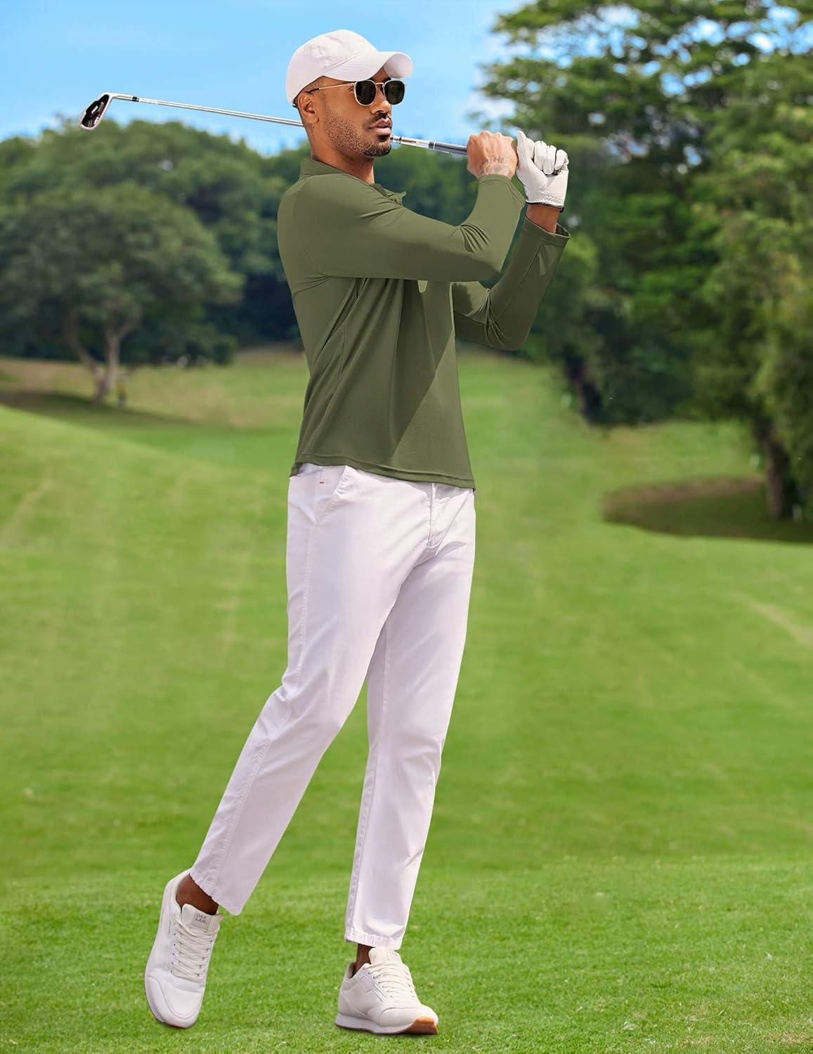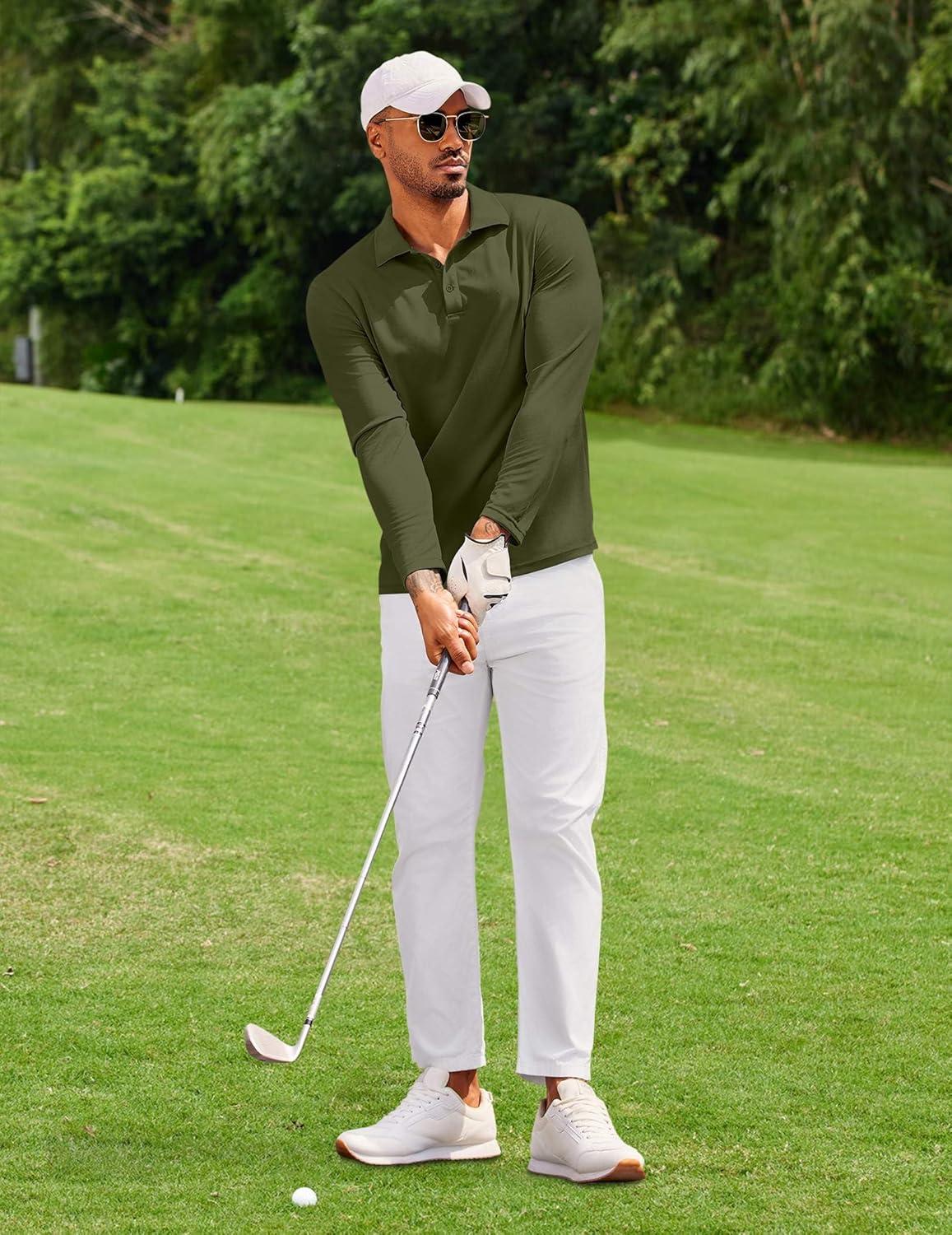 COOFANDY Men's Polo Shirt Long Sleeve Moisture Wicking Golf Shirts Sun Protection Collared Work Shirts(3 Pack Black & Dark Grey & Army Green)